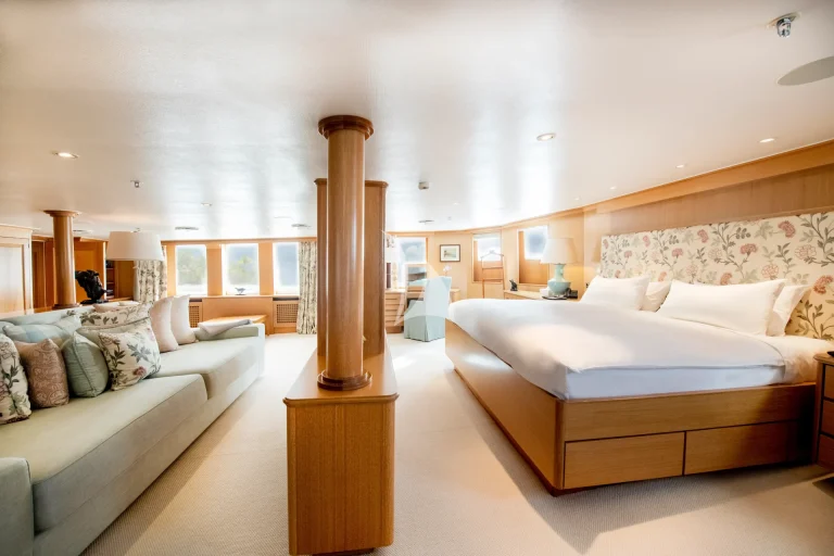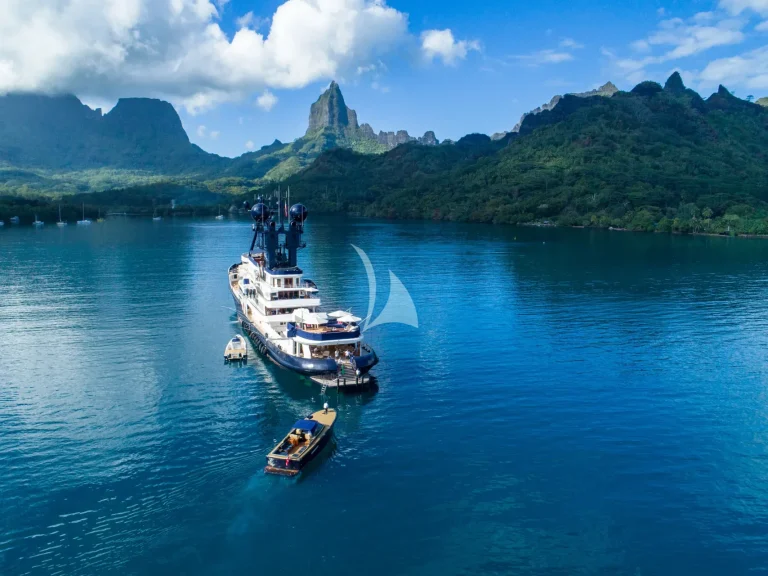 Her conversion preserved her industrial-strength build, complete with an ice-class hull, while introducing expansive living areas, elegant interiors, and high-end finishes. The result is a yacht that effortlessly blends history, luxury, and rugged capability.