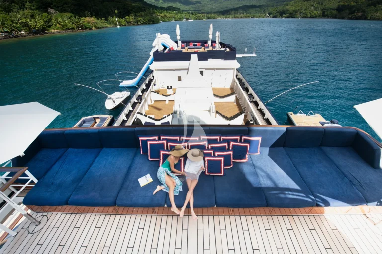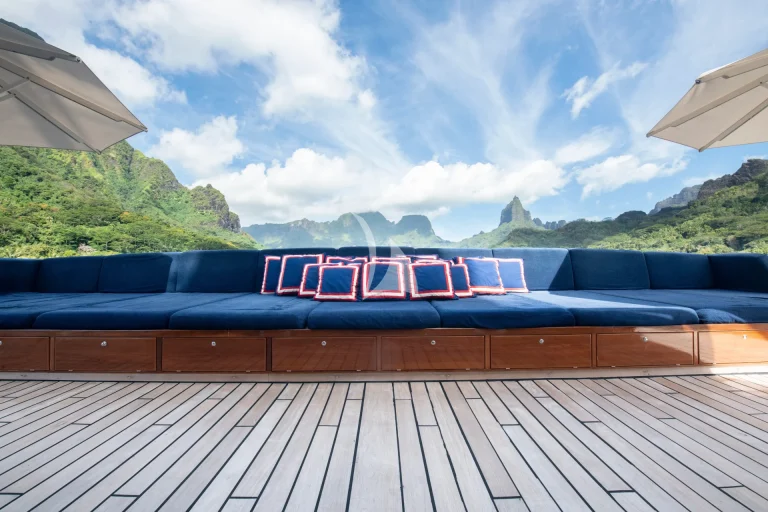 ARCTIC’s vast deck areas are among the largest of any charter yacht, with multiple expansive zones that can be tailored for events, relaxation, or adventure. The heli-deck doubles as a flexible space for everything from outdoor dining and yoga to cocktail parties or dance floors under the stars. Across all decks, modular furnishings and generous proportions create endless possibilities for entertaining or unwinding in total privacy. Inside, guests enjoy a private 4D cinema, massage and wellness suite, gym, pool, Jacuzzi, and a range of indoor and outdoor lounges designed for pure comfort.