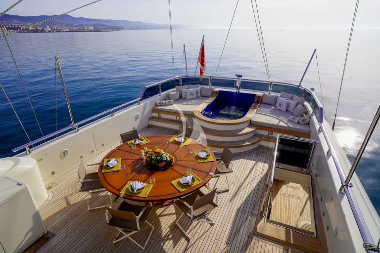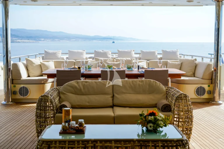 For those with an adventurous spirit, the yacht offers a variety of outdoor activities, including sunrise yoga sessions, guided hikes, swimming stops, and an exciting selection of water sports. Guests can enjoy jet skiing, wakeboarding, Seabobs, paddleboarding, and discover the hidden marine treasures of the Mediterranean through snorkeling and diving.