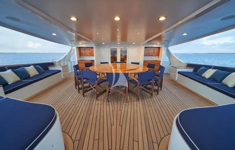 Indulge in breathtaking panoramic ocean views from ASTERIA’s upper salon, where comfortable seating awaits, perfect for sightseeing. Prefer the outdoors? The spacious aft deck beckons with seating for 16 guests. Guests can unwind in the warm and bubbly Jacuzzi conveniently located on the sundeck.