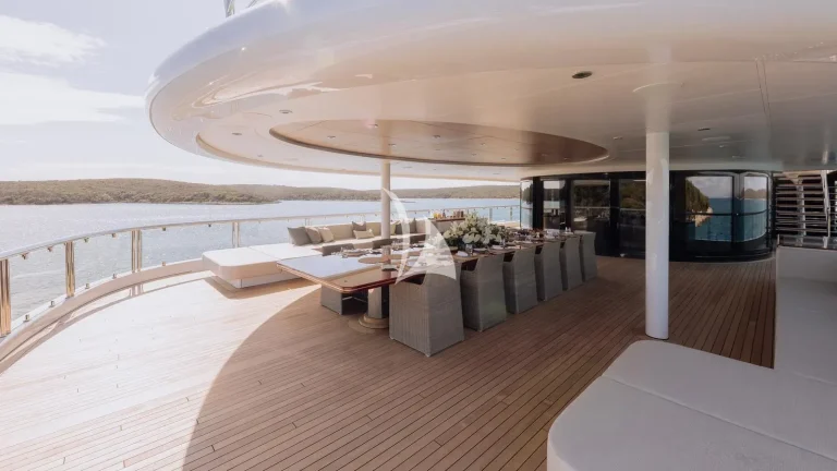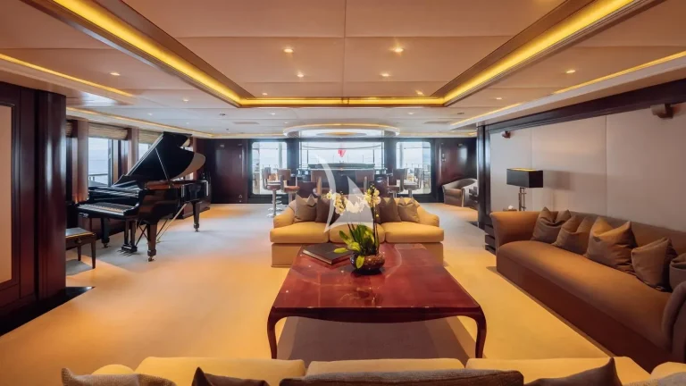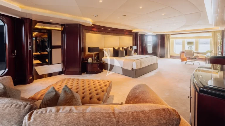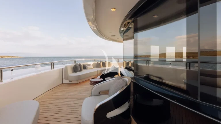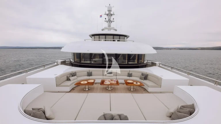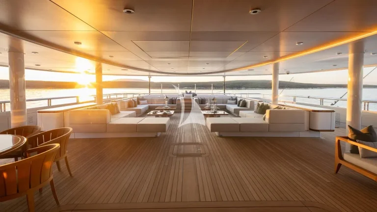 Spanning six expansive decks and boasting a generous 42’ (12.8m) beam, ATLAS offers exceptional space for up to 12 guests, with a layout thoughtfully designed for both relaxation and entertainment. Her interior is a refined blend of timeless elegance and contemporary comfort, featuring sophisticated furnishings and inviting social areas. She provides remarkable interior volume, enhanced by oversized windows that fill each space with natural light, creating a warm and welcoming atmosphere.
