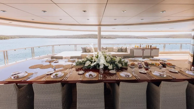 ATLAS offers an exceptional array of amenities designed to elevate every moment on board. Guests can settle in for a film in the private cinema, dance the night away in the discotheque, unwind in the expansive beach club, or sip cocktails beneath the stars at the al fresco bar. For those who appreciate fine wine and dining, the elegant wine lounge and formal dining area features an exquisite 18-seater table. Ten Chambrair wine cabinets provide climate-controlled storage, ensuring every vintage is served at its absolute best.