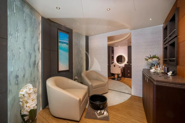 BARBARA features a distinctive layout split over six decks and an elegant, sweeping curved exterior, making extensive use of structural glass. With interior and exterior design by Sam Sorgiovanni, the versatile living area comprises of deck spaces that easily convert into entertainment areas with a vast ‘wellness’ centre on the sundeck, complete with jacuzzi, fully equipped gym and a large sunbed relaxation area. The lower deck boasts a well-equipped massage and beauty salon and a generously sized cinema.