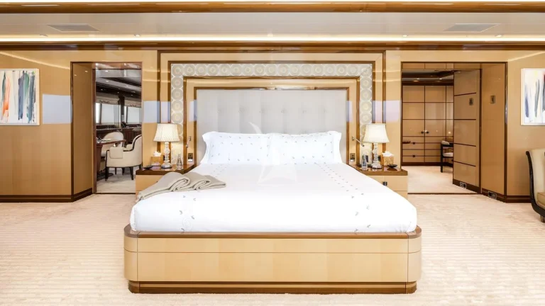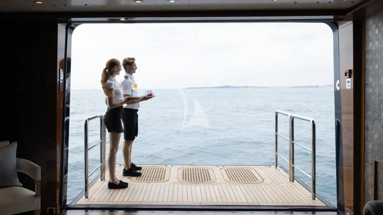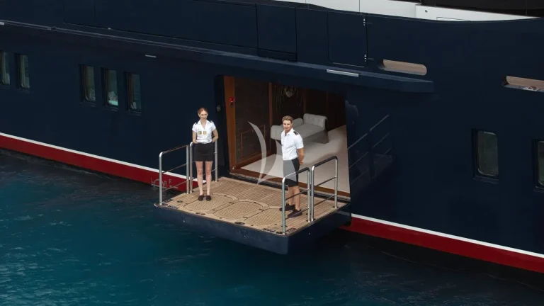 Accommodating up to 12 guests in nine luxurious cabins, BATELLO ensures the highest level of comfort and privacy. The full-beam owner’s suite serves as a private sanctuary, featuring a spacious terrace and two Jacuzzis for the ultimate retreat. Designed with versatility in mind, the yacht’s flexible layout allows for adaptable guest cabin arrangements, catering to the unique needs of every charter party. A dedicated crew of 26 delivers impeccable service, led by a long-standing captain and supported by specialists including a personal trainer, yoga/pilates teacher, spa therapist and dive instructor.