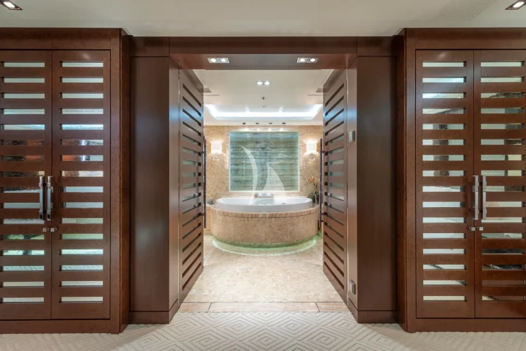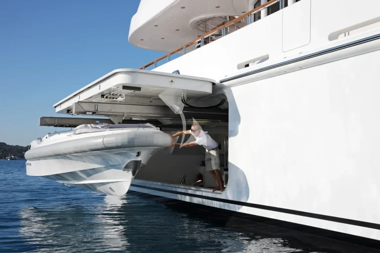 – Gantry crane comprising two bridle beams with rollers installed in the ceiling of the tender garage on Lower Deck