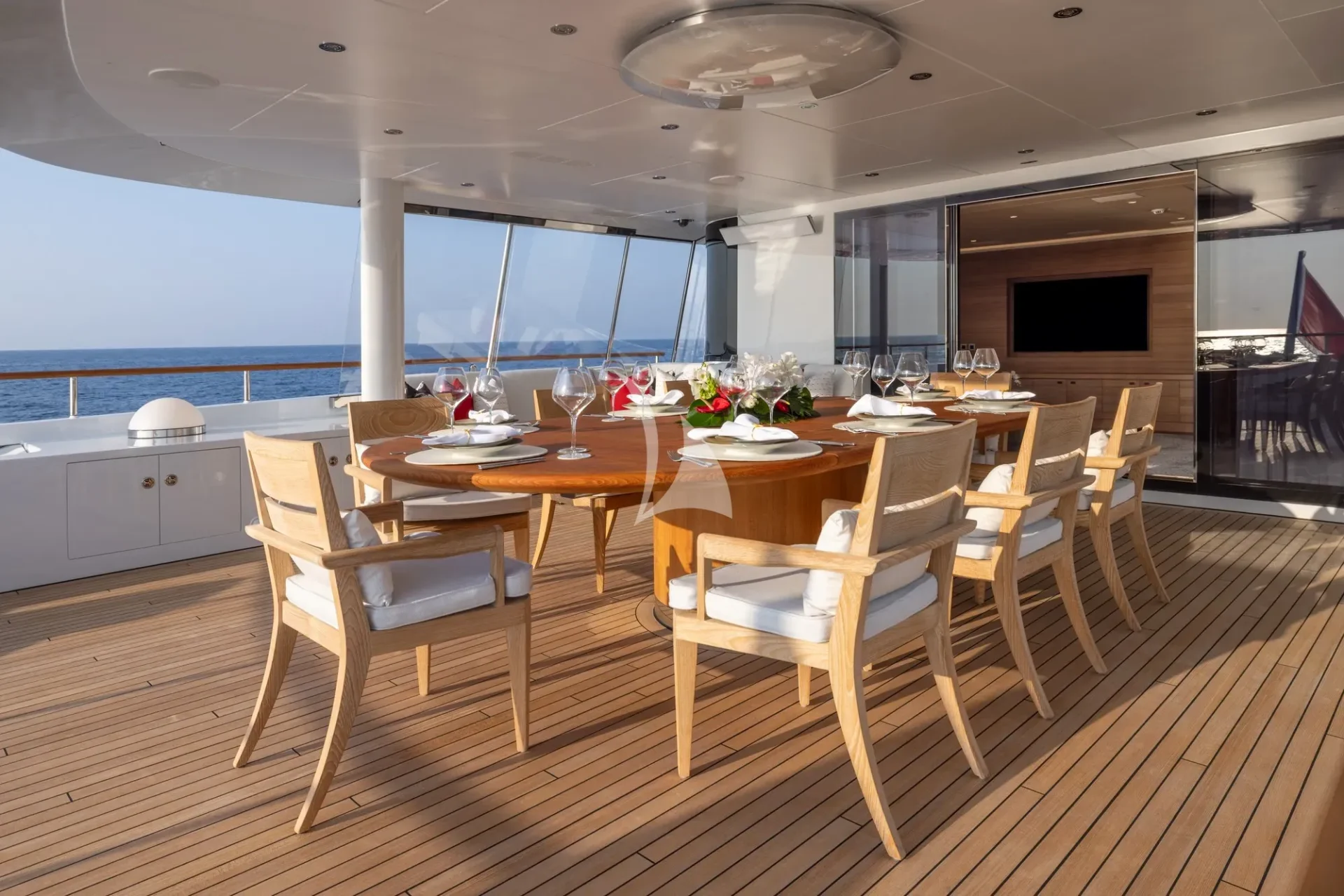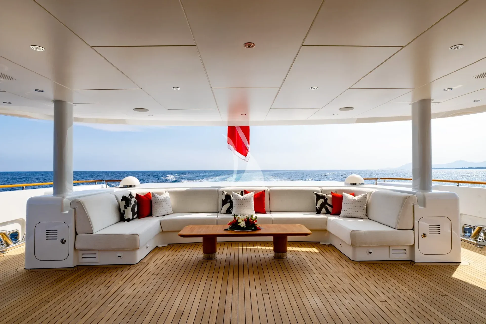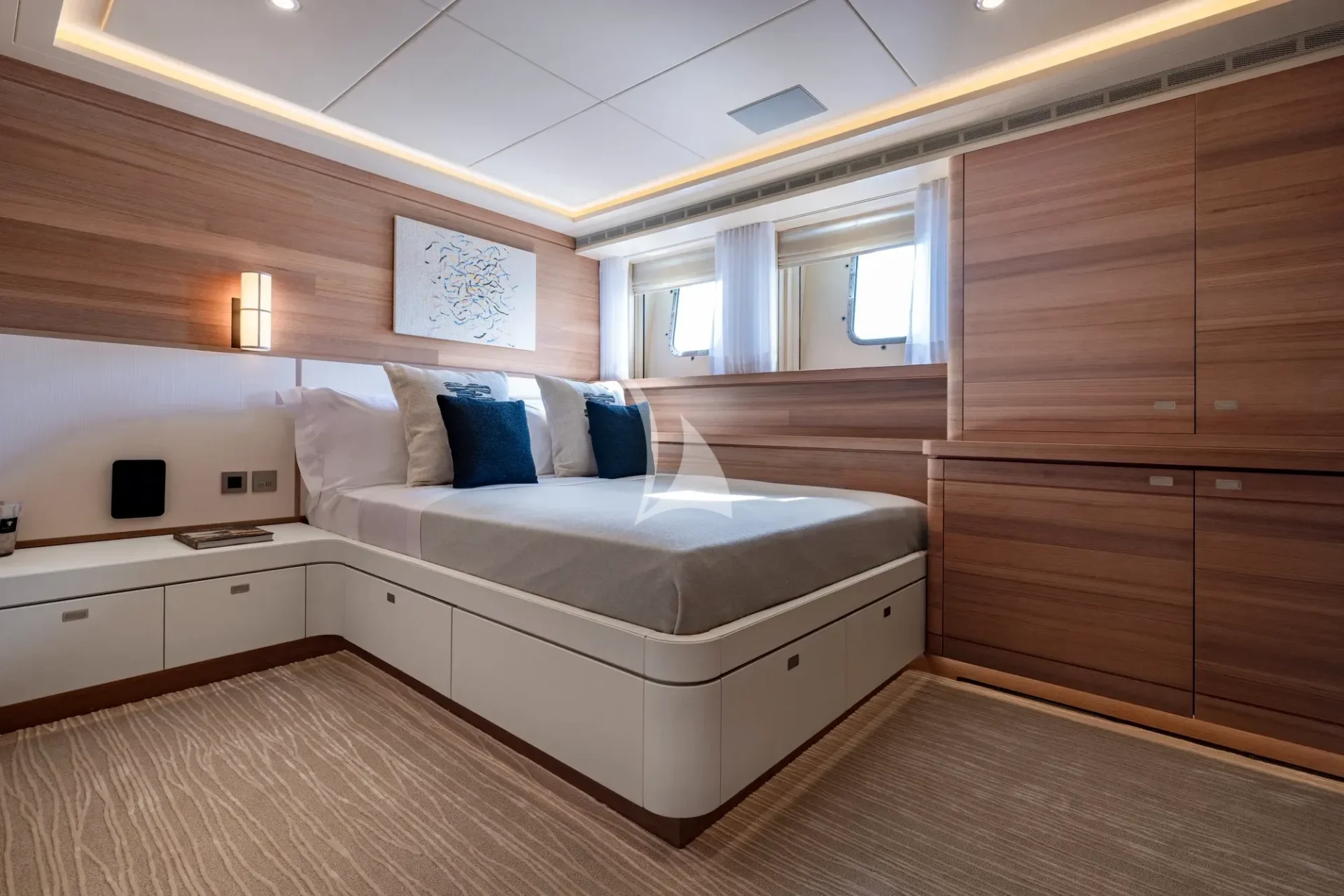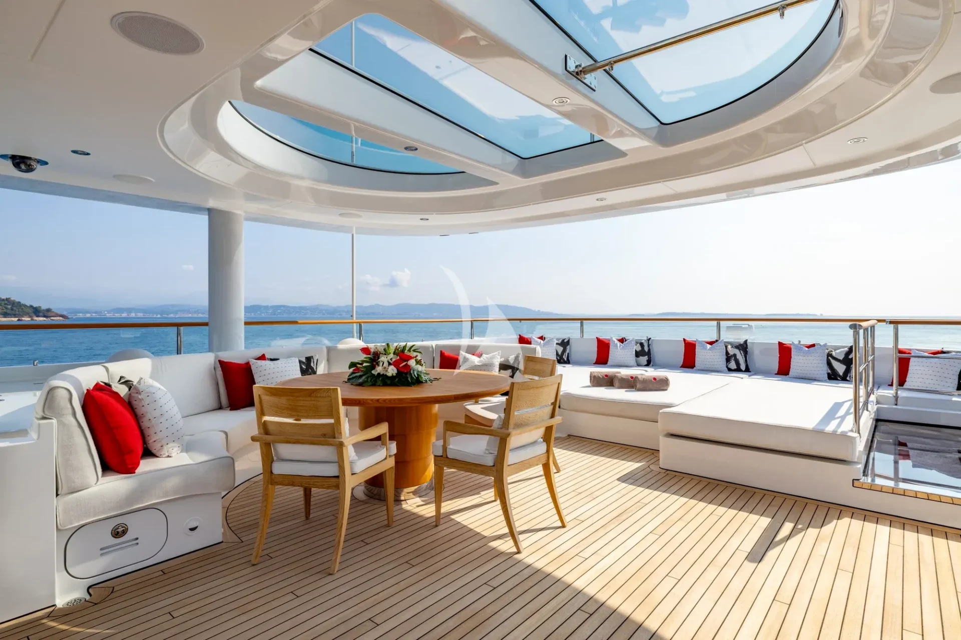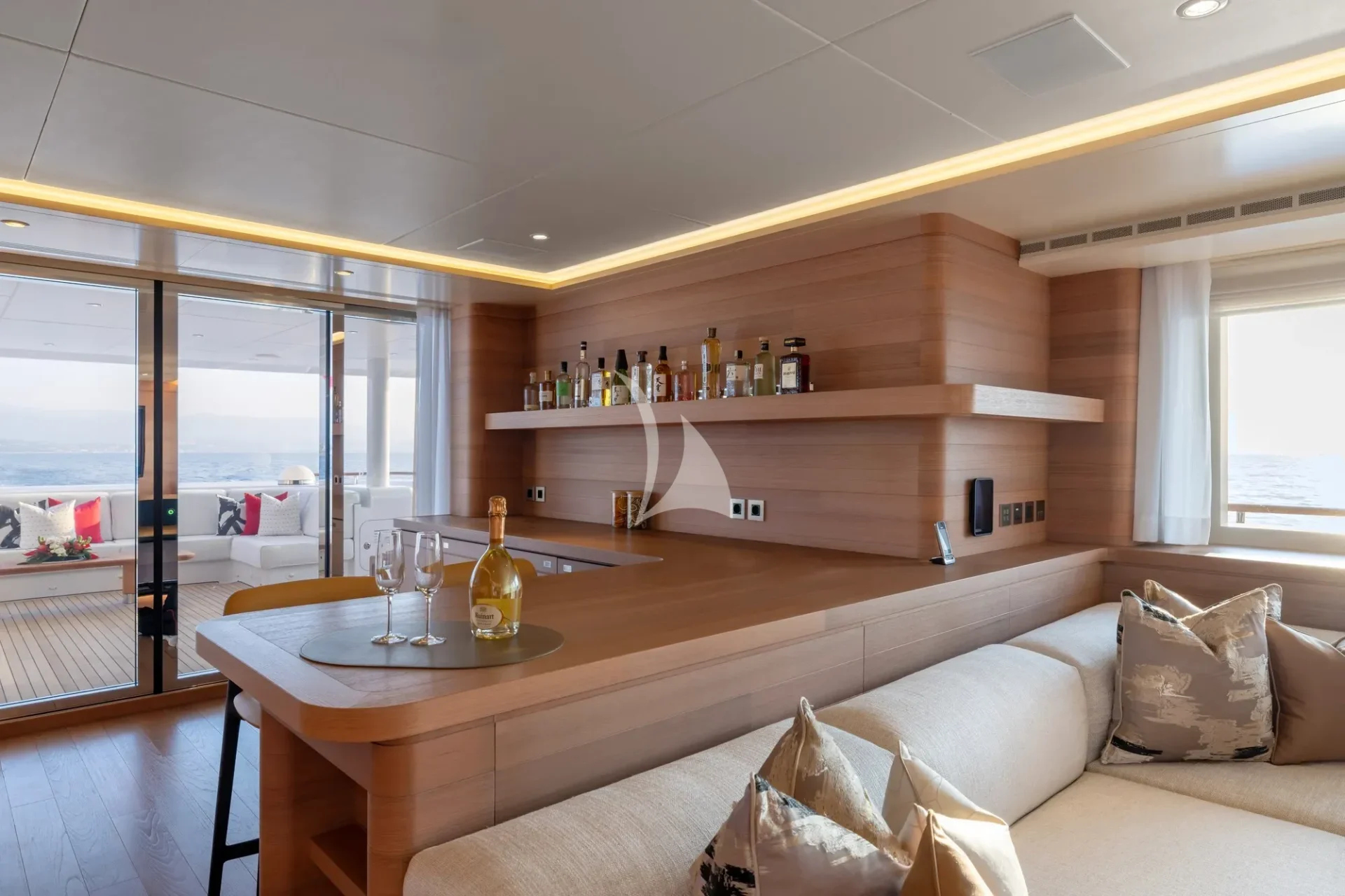 Upgrades include: full hull and superstructure repaint, installation of cutting-edge AV/IT including Starlink, new Smart TV’s throughout, new upholstery, bespoke lighting and new exterior upholstery and awnings, which will provide a racing feeling, courtesy of the yacht’s futuristic lines and carbon fibre poles.