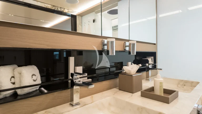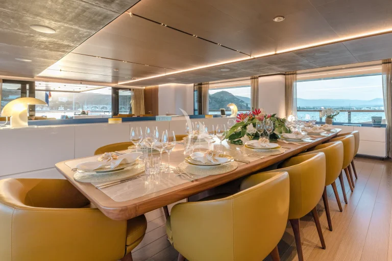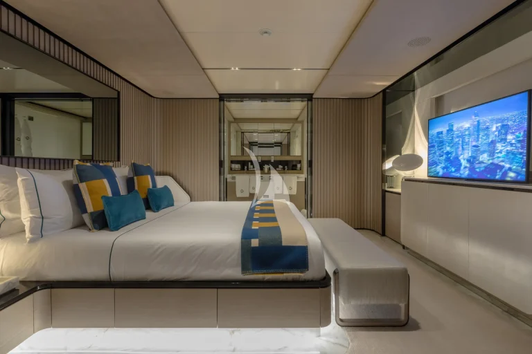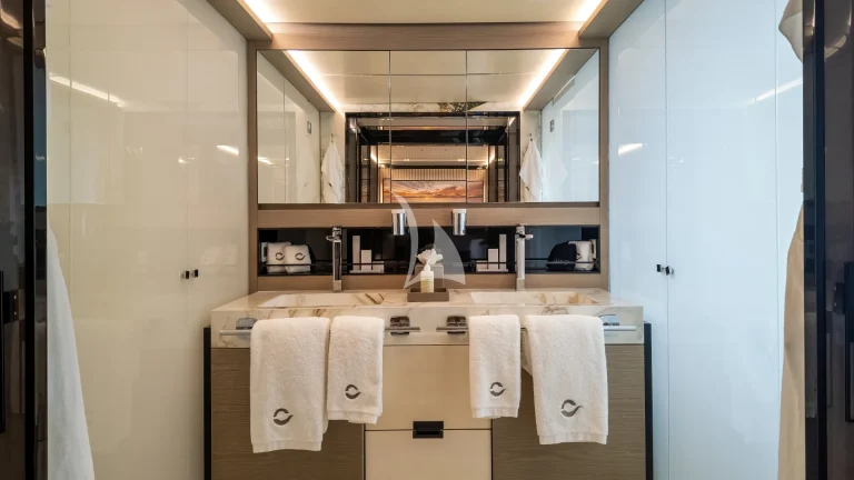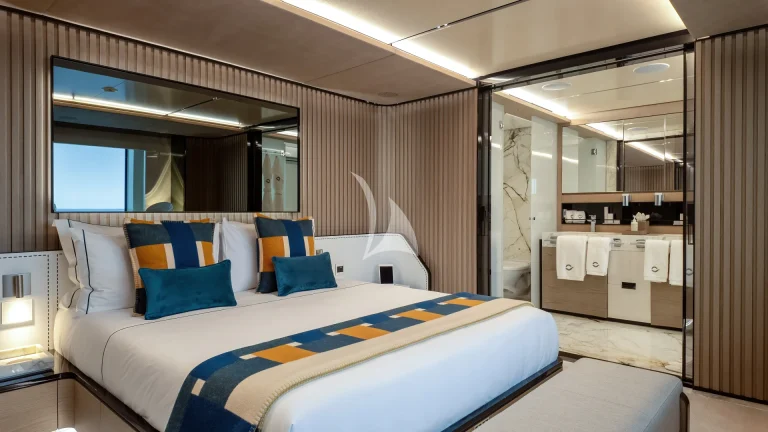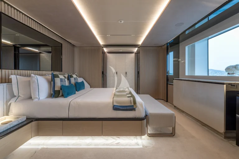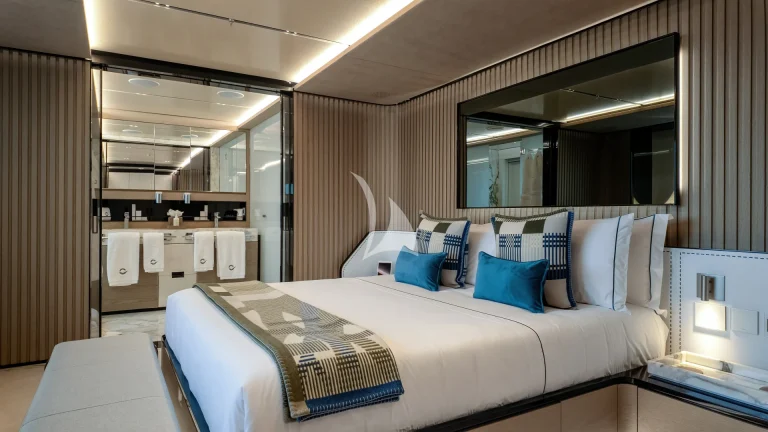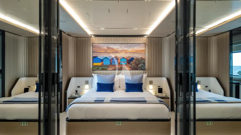 C can comfortably accommodate up to 12 guests across seven cabins with incredible flexibility. The yacht has two master suites and two VIP suites located on the main deck, and a large double cabin, twin cabin with trundle beds and pullman bunks, and a dedicated playroom/children’s cabin on the lower deck.