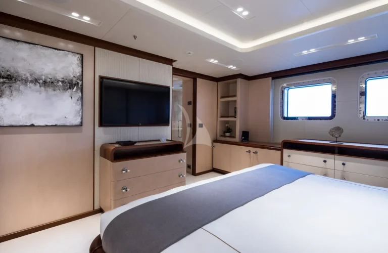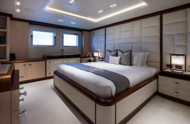 CALEX welcomes 12 guests in seven warm and modern staterooms. The vast master suite is situated on the upper deck with a clear focus on privacy and relaxation. With a private office, spa-like double bathroom and their own private foredeck, this is the epitome of on-water luxury. 180-degree views can be admired whilst in bed, or guests can head through the automatic doors to the completely private open-air hangout.