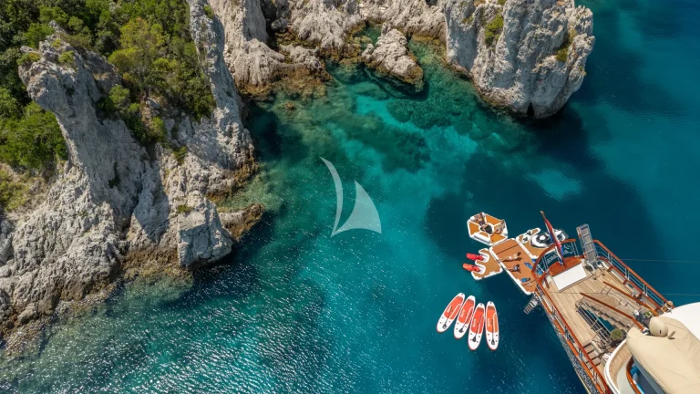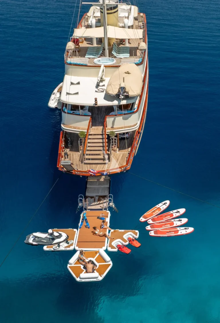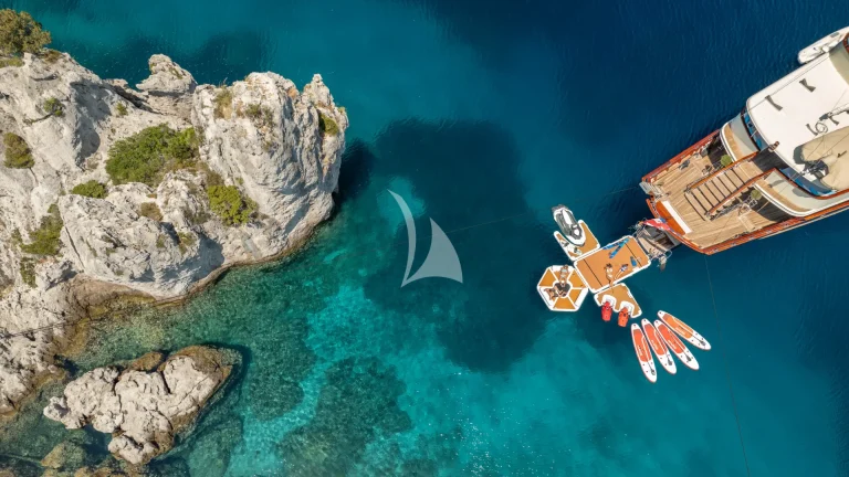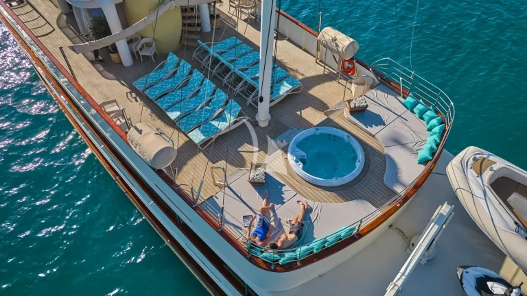 On the aft deck, guests can enjoy al fresco dining at the large table, ideal for leisurely meals while cruising. A fold-out bathing platform provides effortless access to the sea, adding convenience to luxury. Whether you’re planning a serene retreat or an adventurous voyage, Casablanca offers the perfect platform for a bespoke Adriatic yachting experience.
