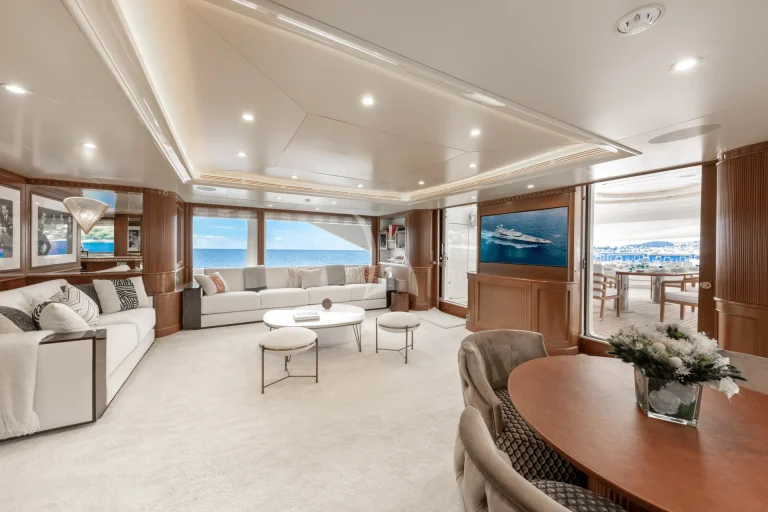COME PRIMA is a masterclass in Benetti design, and is the fifth yacht from the Italian Shipyard’s Golden Bay Series. Delivered in 2000 and refit in 2023, she is a cruising yacht with capability, reaching speeds of up to 18 knots. COME PRIMA is a steel and aluminium monohull displacement yacht and is built to ABS class. She is powered by two MTU 12V296 TE94 diesel engines, capable of achieving 3,8000 n/m and is equipped with zero speed stabilisers.