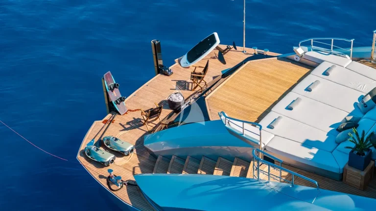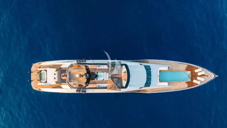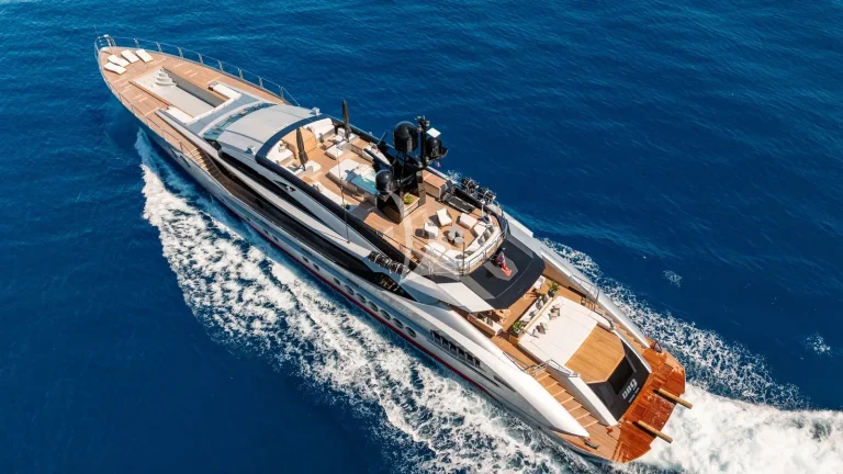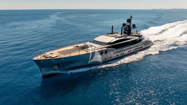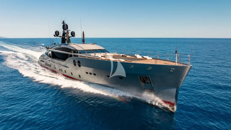 DB9 is a stunning Palmer Johnson Sport Yacht that is sure to turn heads anywhere she goes. DB9’s sweeping curves and striking metallic grey exterior make her one of the most unique yachts in the world, as this PJ 170 can accommodate 10 in 5 luxurious staterooms. Some of her standout features include an elegant contemporary interior, a spacious open sundeck with an open-air cinema, an infinity jacuzzi on the aft deck, a jacuzzi on the flybridge, and a 25’/8m foredeck pool. She is able to get you to your destinations quickly, with a cruising and max speed of 22/30 knots. DB9 is also fully stocked with the latest water toys including a 6.4m/21′ Castoldi jet tender, 2 jet skis, 2 Seabobs, an inflatable kayak, a Lift E-foil, waterskis, wakeboards, and much more!