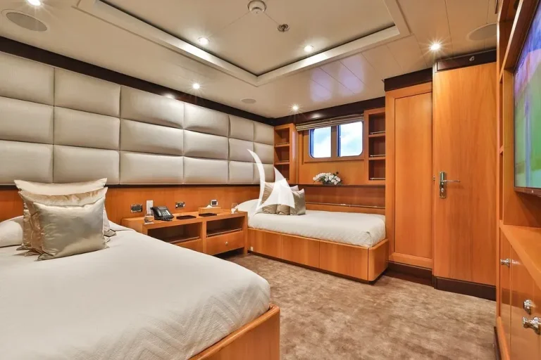 With her inviting contemporary interior, spacious outdoor living areas and unique massage waterbed, DENIKI offers fun, adventure and excitement for charter guests of all ages. She’s absolutely sparkling after an extensive 2021-22 refit, which included a full repaint and a comprehensive refurbishment of her main deck lounge and master suite.