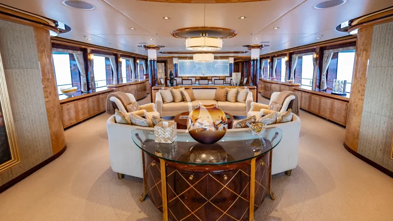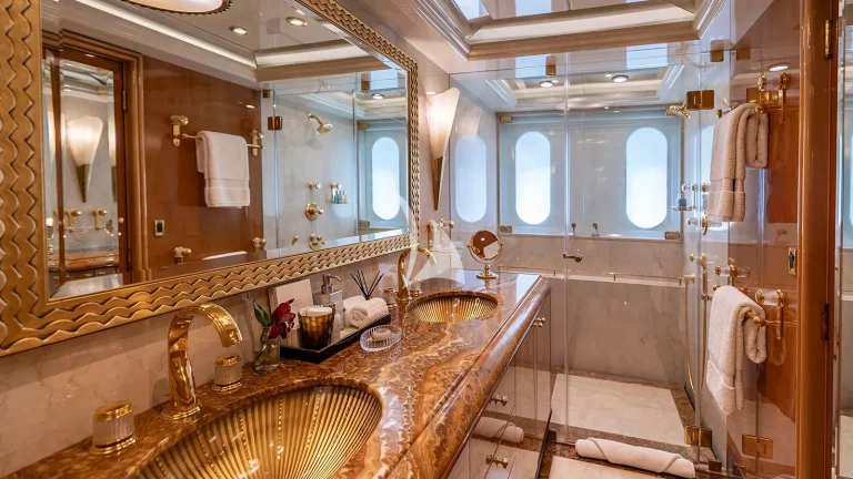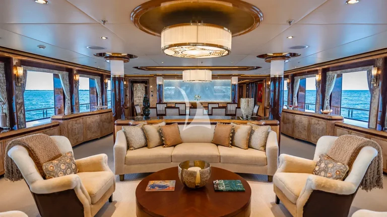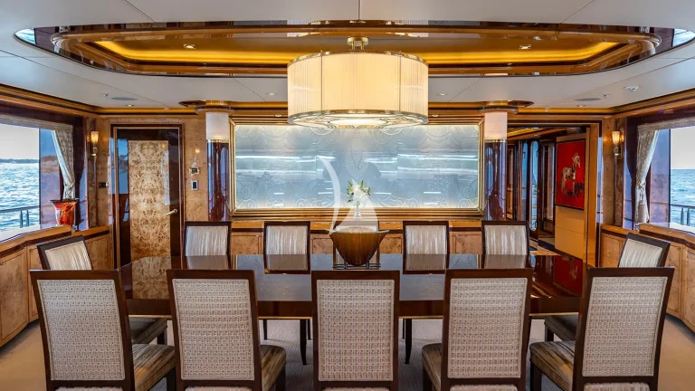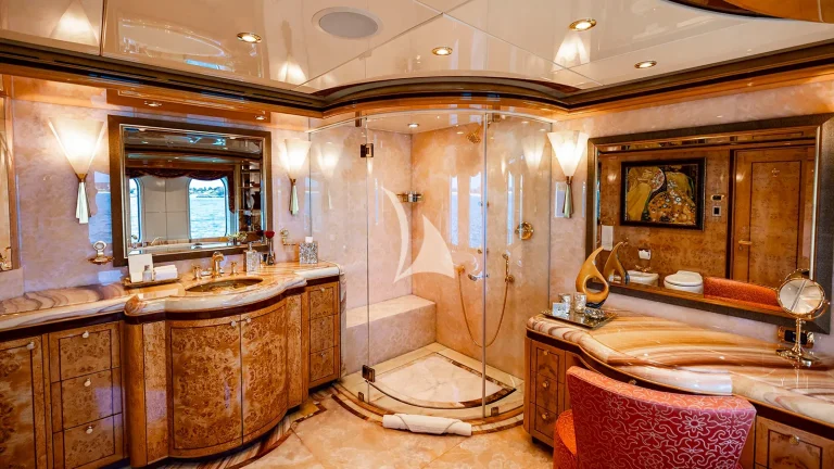 ELIS ET MAR (ex. LIBERTY, LADY SARA) blends timeless elegance with purposeful design, offering a charter experience defined by comfort, flexibility, and refined detail. Built with seasoned superyacht expertise, she boasts an impressive volume for her size, creating a sense of openness typically found on much larger yachts. Her interiors are a showcase of bespoke craftsmanship: Italian marbles, Lalique glass panels, and silk carpets are complemented by rich birch, vavona, and popular buri woods—together creating a warm, sophisticated atmosphere that feels both luxurious and inviting.