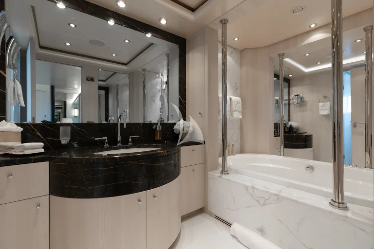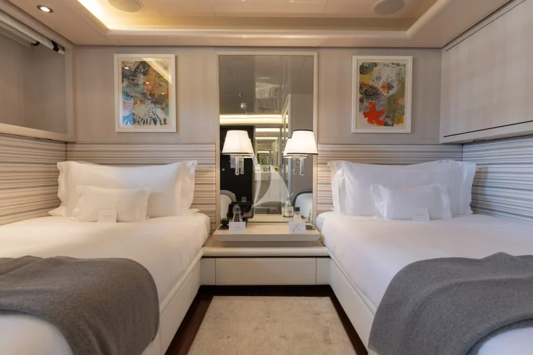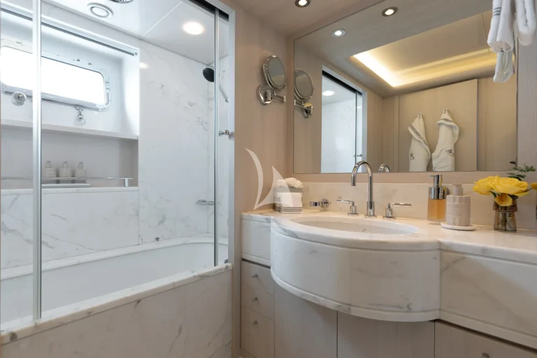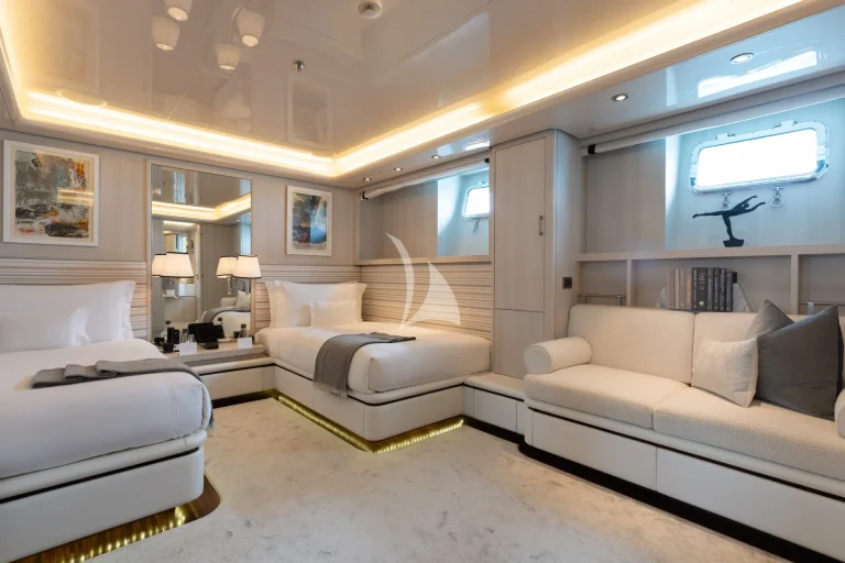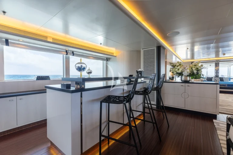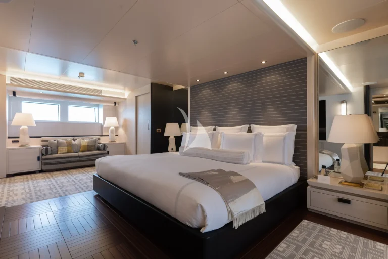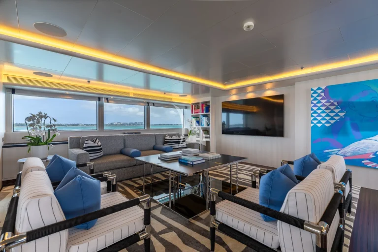 M/Y ETERNITY welcomes guests aboard with an inviting and refined living space. Bright local colors of the Bahamian waters are infused throughout her interior design, lending to a relaxed and casual elegance, with 7 staterooms for 12 guests. Inviting interior spaces and deck space built for entertaining and relaxing, ETERNITY delivers all the amenities and a full array of water toys for the best guest experience in the Bahamas. ETERNITY’s artwork is procured by native Bahamian John Cox and rotates throughout the seasons. Guests can look forward to exciting, new gallery delights upon their return.