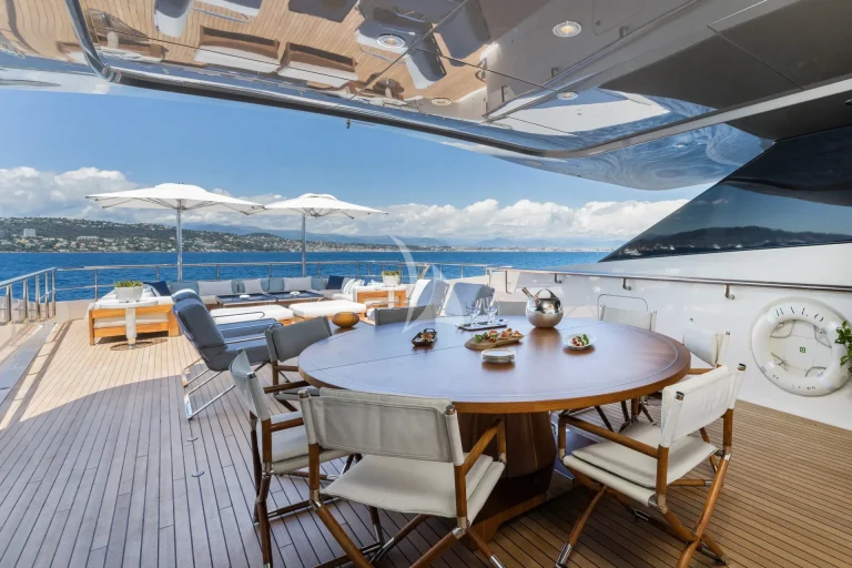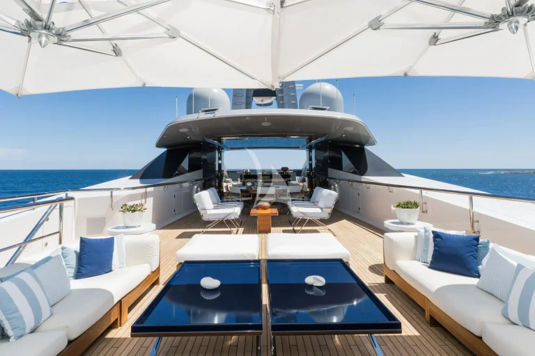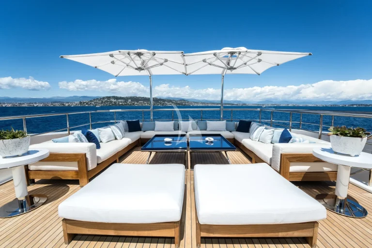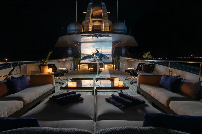 Her long list of amenities includes a gym, a pool with innovative custom carbon fibre awnings and an outdoor cinema while her living spaces both inside and out offer incredible versatility. Add to all this a toy selection that will delight even the most insatiable water sports enthusiast and Halo offers a charter experience of celestial proportions.