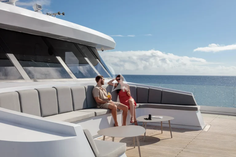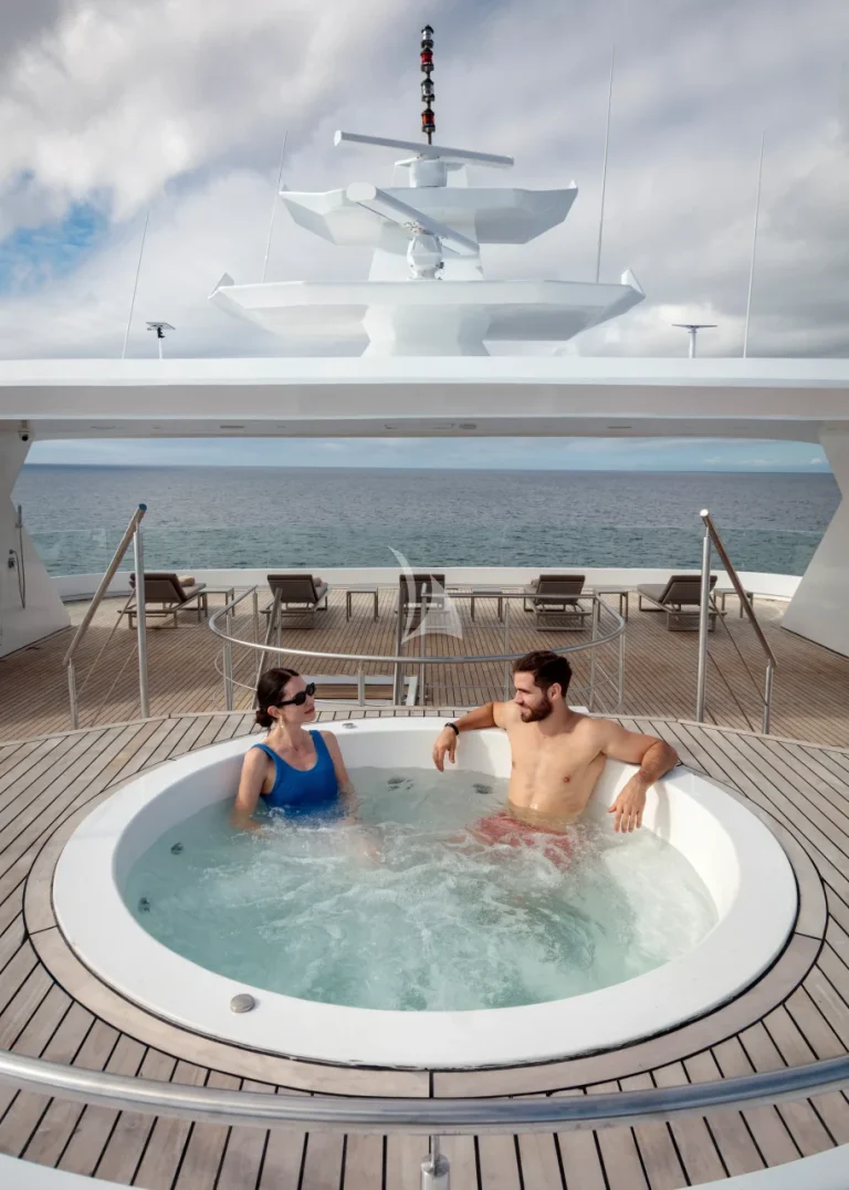 With a generous 1,000 sqm (11,000 sqft) of guest space spread across four decks, HERMES strikes the perfect balance between exploration and indulgence. Whether you’re relaxing in the Jacuzzi, rejuvenating in the spa, or enjoying impeccable service from the 17 crew members dedicated to your comfort, HERMES ensures an unparalleled luxury experience. She is the epitome of elegance and performance, making her the perfect vessel for your Galapagos adventure.