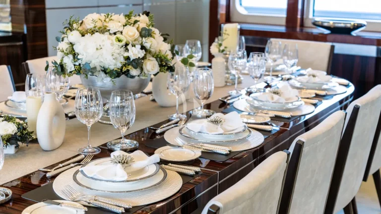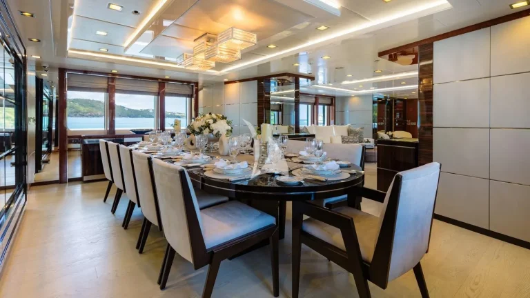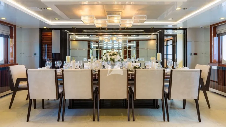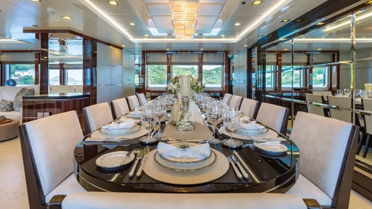 HOLDIN’ MY OWN is able to accommodate 12 guests in six generous staterooms including an impressive full-beam master and VIP on the main deck, three doubles, and one twin. All are en suite and beautifully styled to create the perfect haven for guests to retreat to during their time on board. Thirteen crew members, who specialize in creating exceptional charters, are on hand to provide guests with a yacht charter vacation to remember. The entire yacht has been designed around the charter experience, with an exceptional food and dining programme in place and multiple dining spaces – both inside and outside, formal and informal – to choose from.