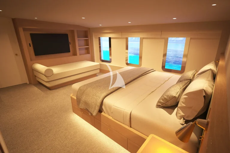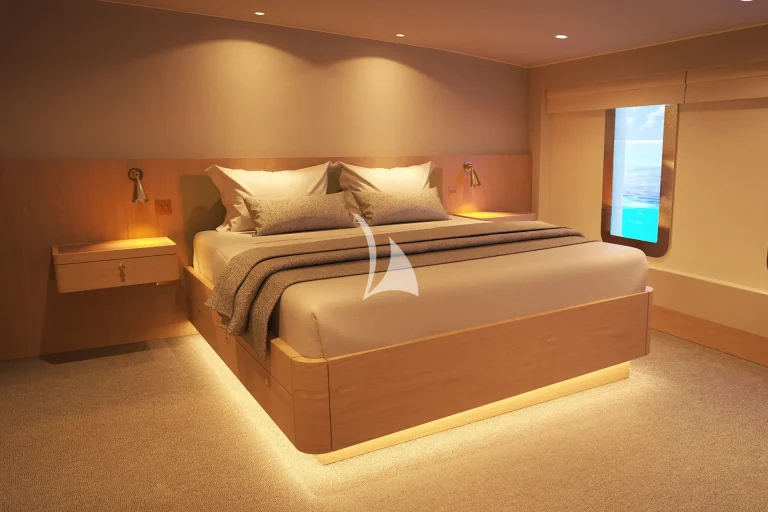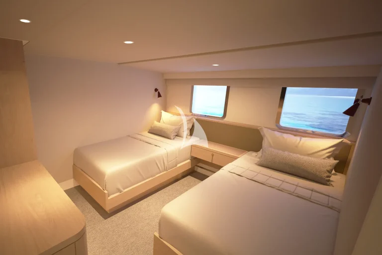 atmosphere. With seven cabins featuring a flexible configuration, including two that can be converted between twin or king setups, the layout offers exceptional versatility to suit the needs of any group.