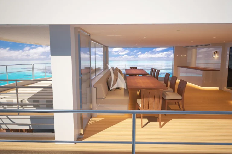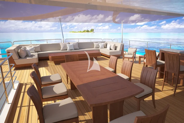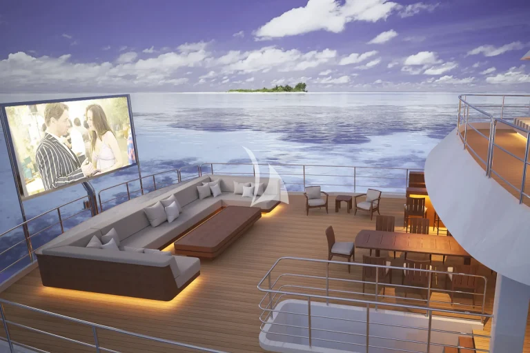 Her spacious deck areas are vast and all-encompassing, with several areas for alfresco dining, socialising, relaxation and entertainment. Relax at the outdoor bar in front of breathtaking sunsets or take in a starlit film on the outdoor cinema screen. With sun