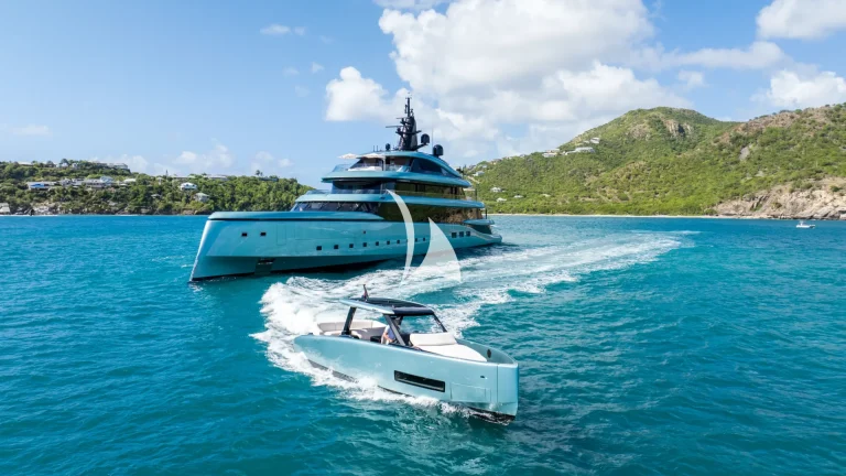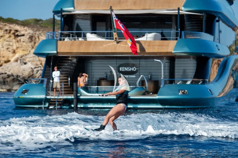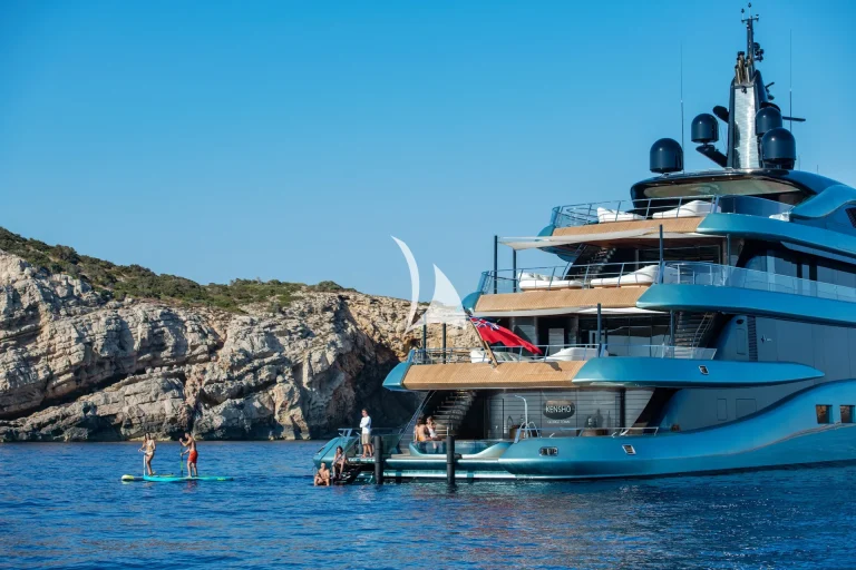 From swim deck to sun deck, Kenshō is committed to life on the water. Her owner, in love with the at-sea lifestyle, threw convention out of the window with her layout. Using asymmetry, integrated outside living areas and spaces in unexpected places, he created a yacht that is totally dedicated to life on the water, allowing the sea to be viewed – and enjoyed – at every turn. Fun is promised on every level, from her swim deck with its gym, 6m swimming pool and high-octane collection of toys, to her sun deck with forward jacuzzi , a choice of seating and lounging areas and wide signature walkways. Kenshō’s colossal interiors are calming and sophisticated, offering smooth transitions between each open guest area.