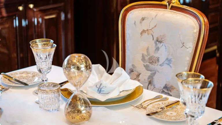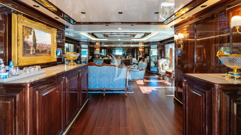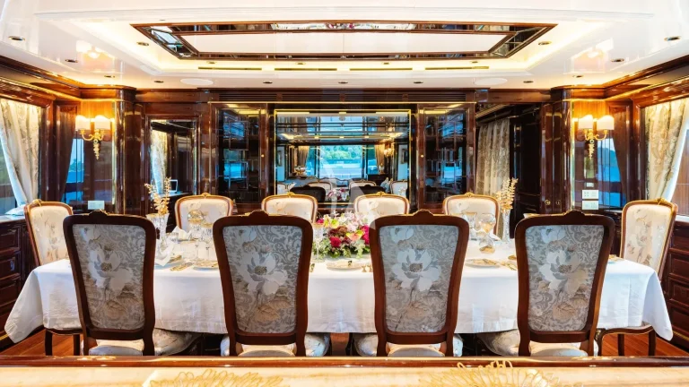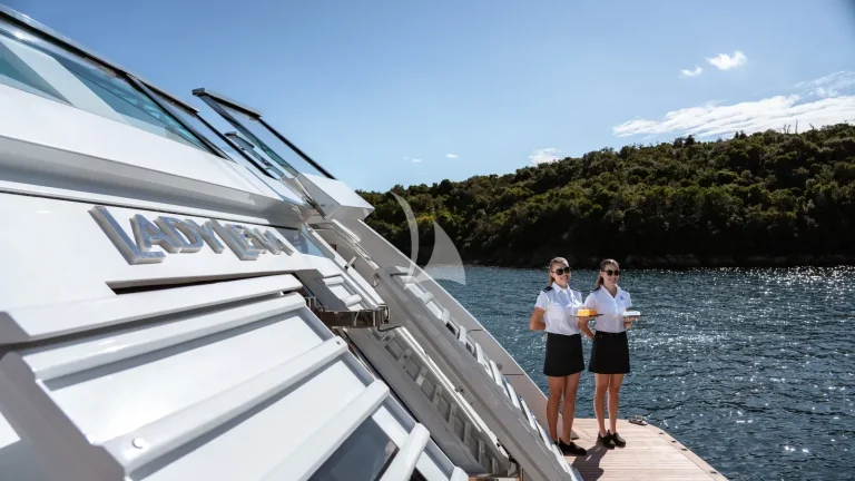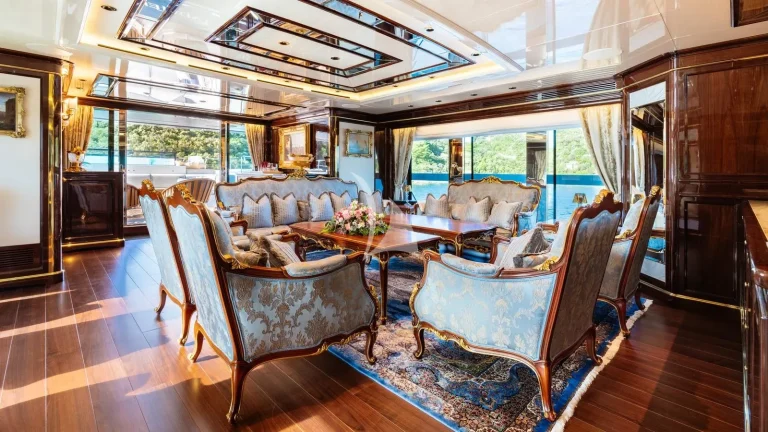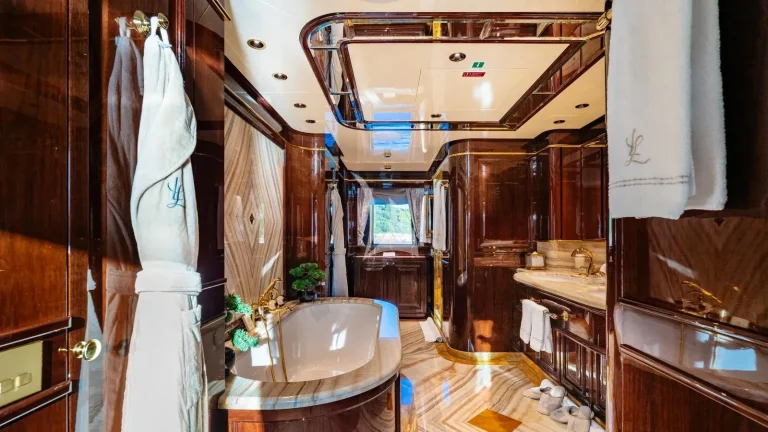 Offering versatile charter accommodation, Lady Lena can welcome up to 12 guests over six staterooms, comprising of the full beam Primary Stateroom, three VIP and two multi-purpose doubles with sofa-beds and pullmans. All staterooms are exquisitely finished, with the primary stateroom being a particular haven of luxury, with a separate office and onyx-clad bathroom, complete with his and hers vanity, full bath and separate shower room. Excellent service is guaranteed, with nine crew members on board to look after guest’s every need, and on-board luxuries such as a Spa are guaranteed to leave everyone relaxed and refreshed at the end of their stay.