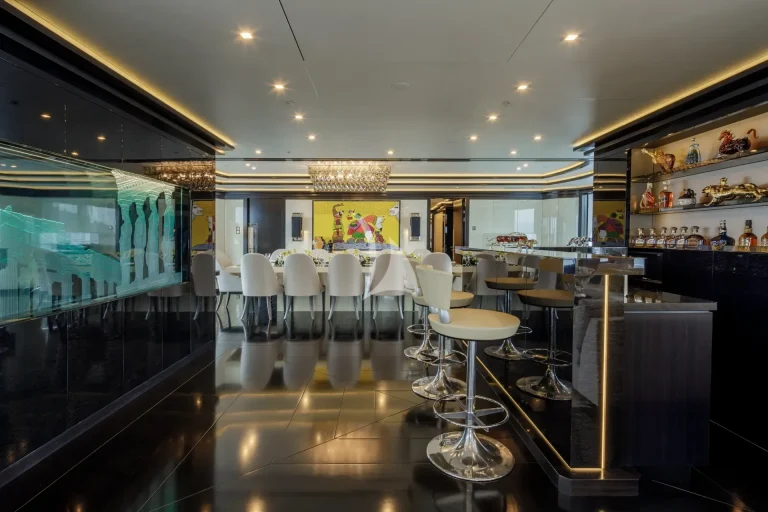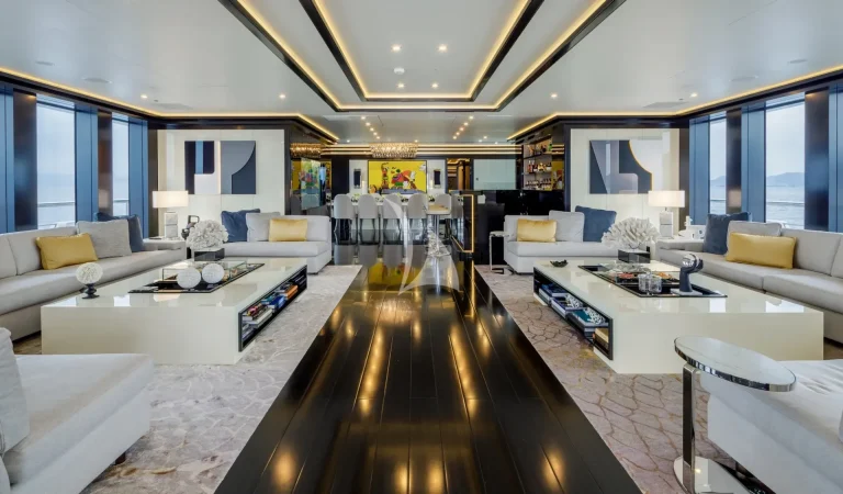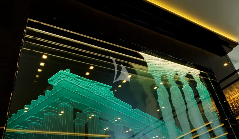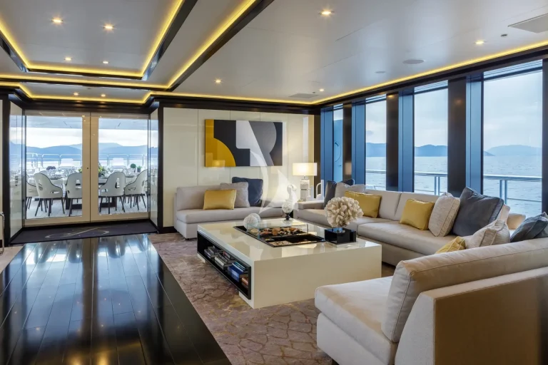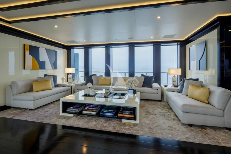She can comfortably accommodate 12 guests in 6 modern and spacious double staterooms served by 16 crew. High ceilings and lofty windows flood the rooms with natural light and provide spectacular sea views throughout.