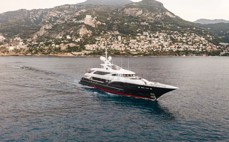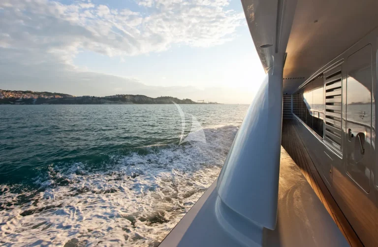 Her sleek, dark grey hull and dynamic lines convey a sense of power and speed. Fully stabilised and capable of speeds in excess of 15 knots, she is comfortable, fast and remarkably fuel efficient.