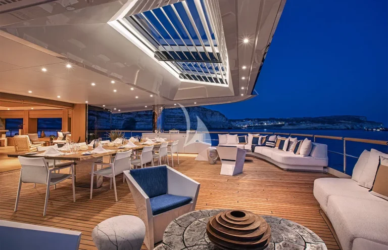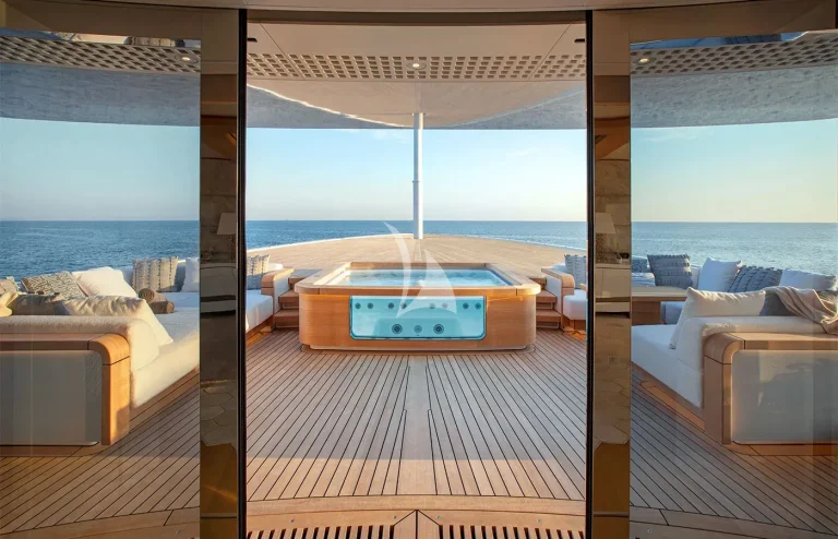 • Symmetrical Lounge Seating: Mirrored seating on both port and starboard sides, creating a balanced and inviting atmosphere.