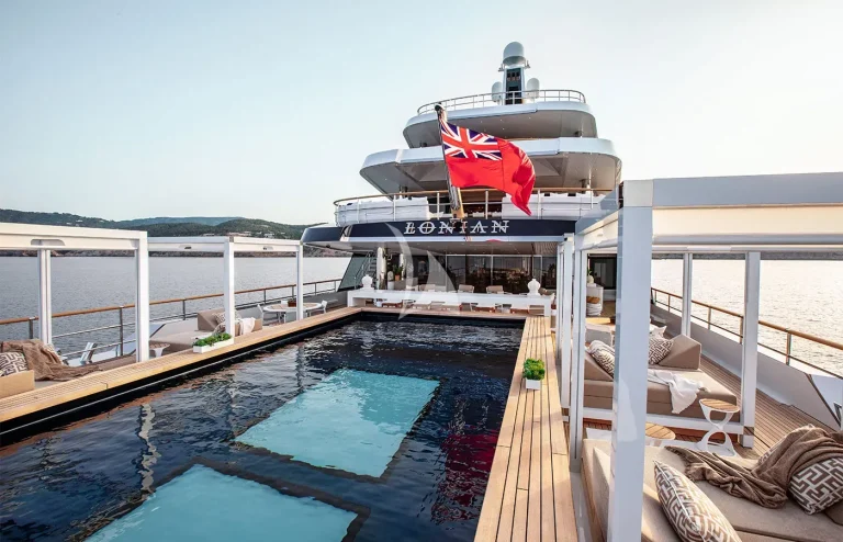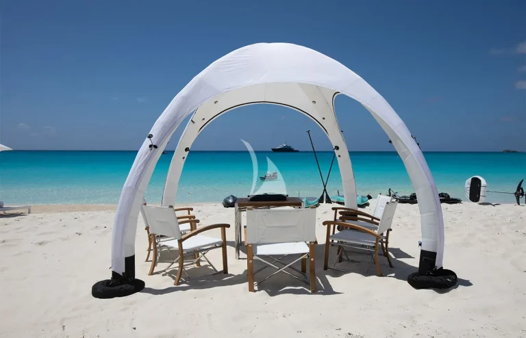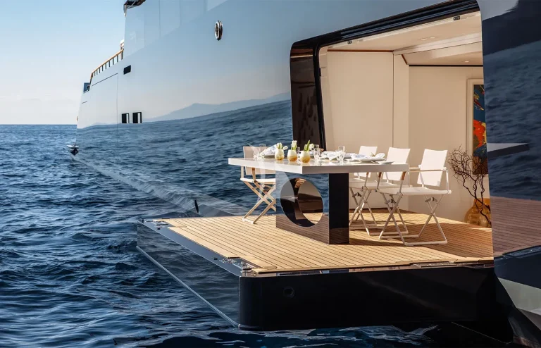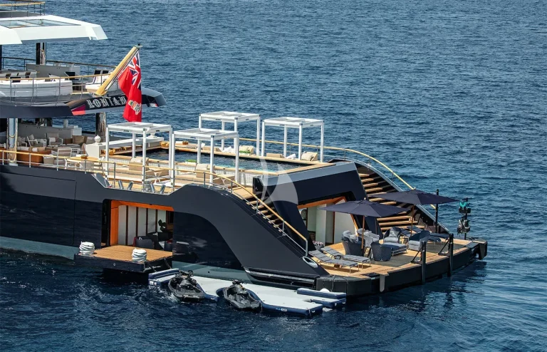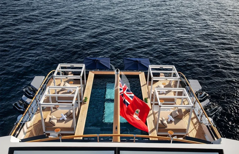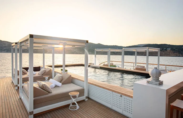 • Expansive Swim Platform: A spacious swim platform equipped with umbrellas, creating a comfortable shaded area by the water.