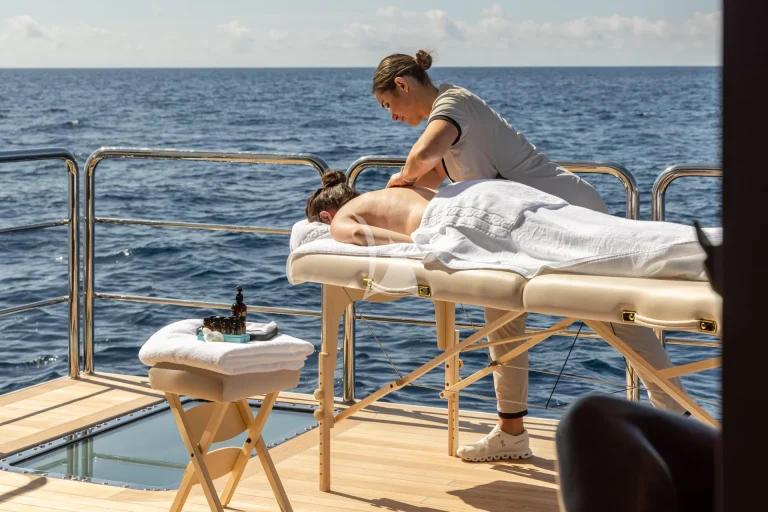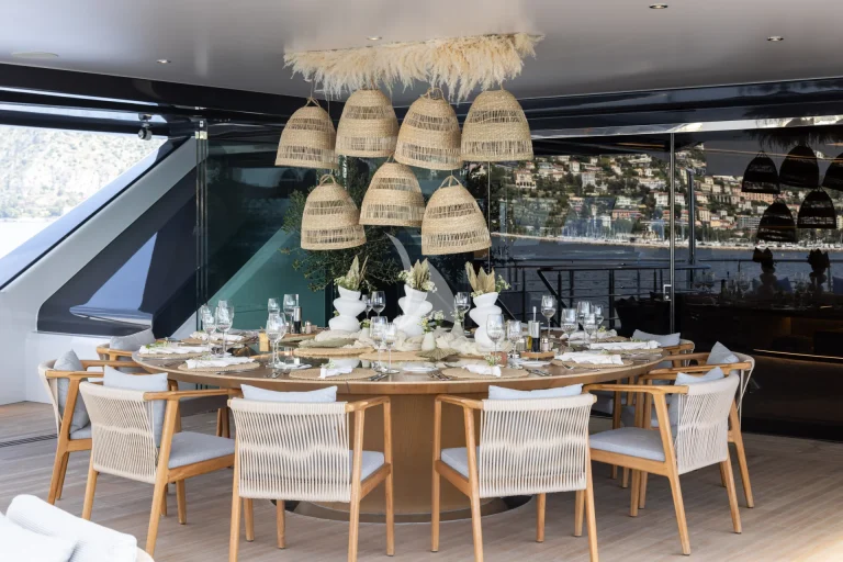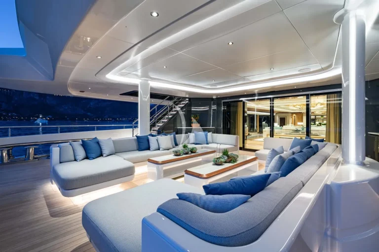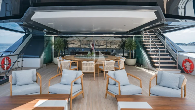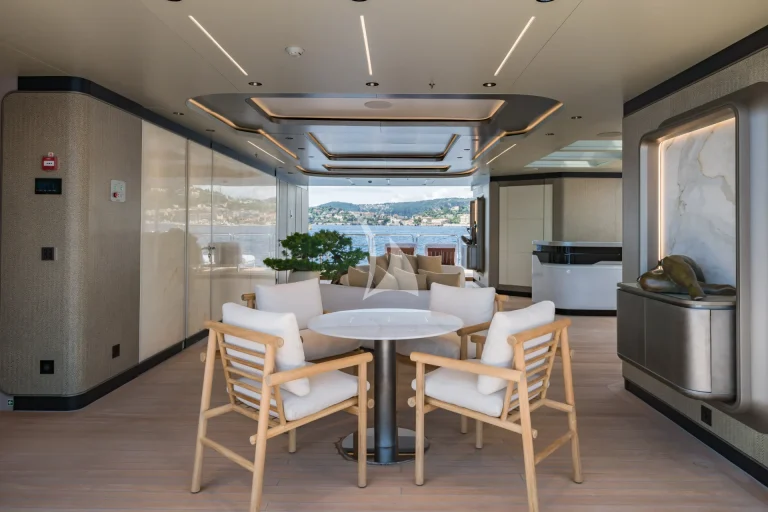 MALIA is the perfect choice for the discerning charterer seeking indoor and outdoor experiences across multiple decks, creating an idyllic sanctuary for relaxation, entertainment and indulgence. The seamless integration of exterior and interior spaces allows guests to effortlessly traverse between them. The strategic use of glass blurs the lines between inside and outside, whether it’s basking waterside on the beach club sea terraces, finding tranquility in the spa, or gathering for dinner in the sprawling main deck dining area surrounded by floor-to-ceiling windows.
