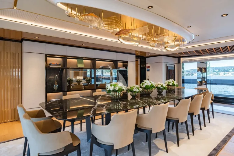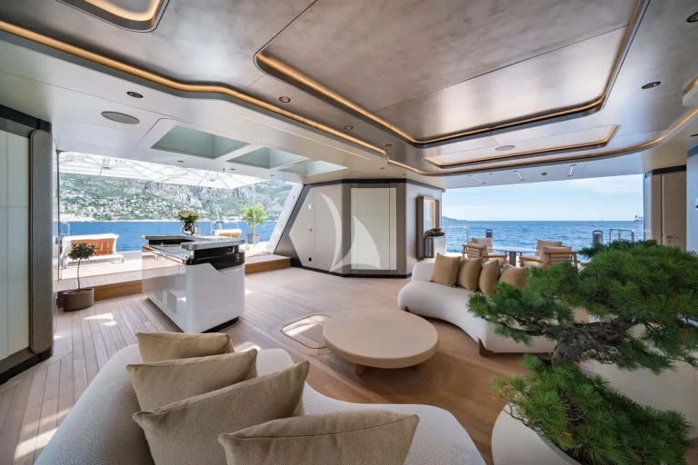 Luxury charter yacht MALIA is a beacon of opulence and cutting-edge design delivered by the reputable Greek shipyard, Golden Yachts, in 2023. MALIA stands as a testament to sleek, luxurious, and stylish aesthetic. Crafted to perfection, her build highlights a meticulous attention to detail. Studio Vafiadis, the visionary exterior designer, has penned MALIA with a distinct and sophisticated look that captivates. Further contributing to the yacht’s allure is the collaborative effort of Studio Vafiadis and Massari Design Studio in shaping the interior spaces. This dynamic duo has curated a sensory experience, integrating over 250 finishes, rich materials, and precious stones seamlessly throughout the yacht. Each detail reflects the pinnacle of craftsmanship and design prowess, making MALIA a masterpiece on the water.
