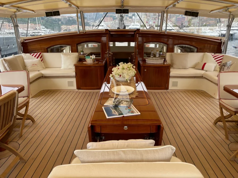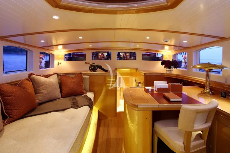 Traditional craftsmanship and modern technology have created a fast, comfortable sailing yacht with a light interior and a sophisticated style. Nautical paintings, antiques, a baby grand piano and actual working cannons will take you back in time of adventure excitement and the romance of the sea.