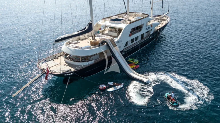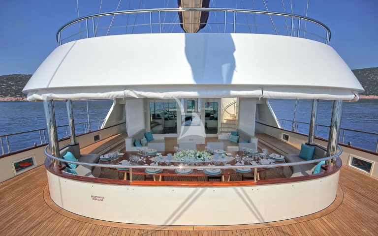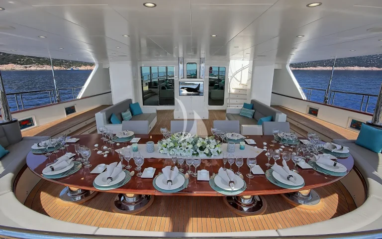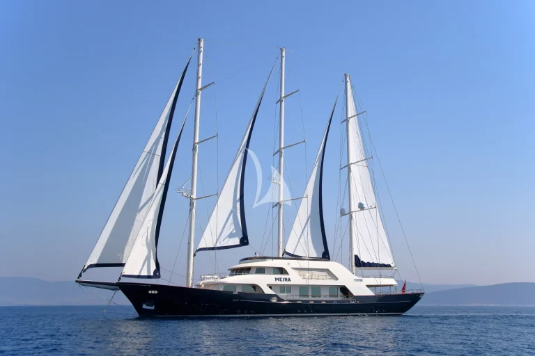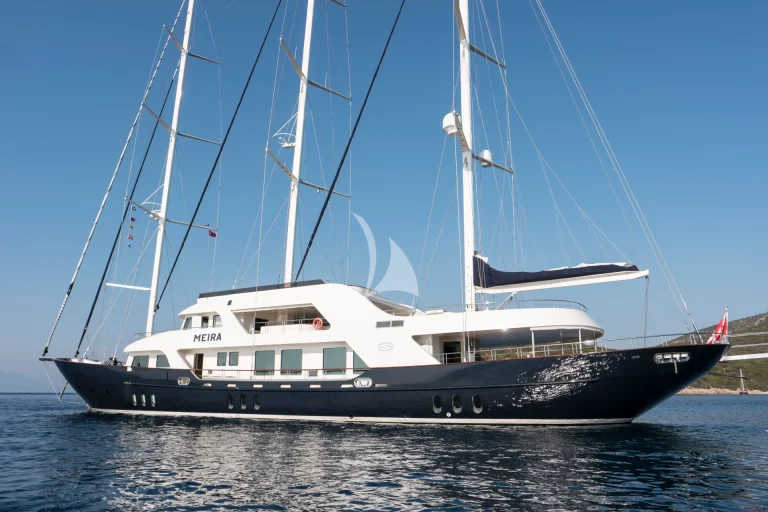 At 55 meters and six cabins MEIRA offers exceptional space above and below decks for 12 guests.