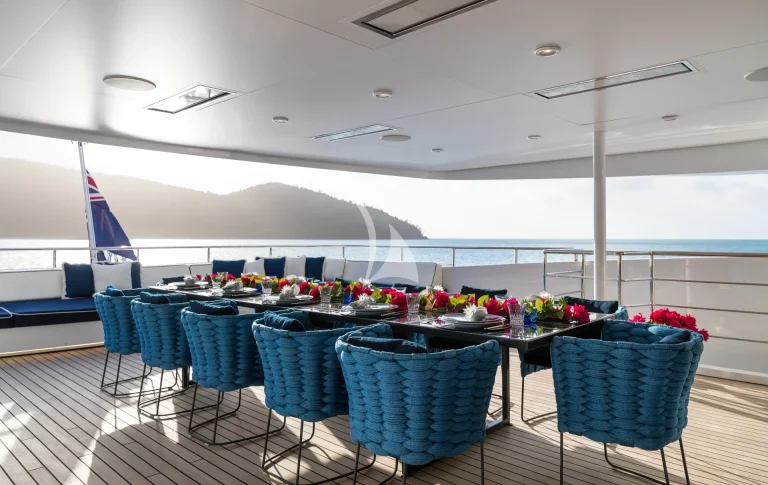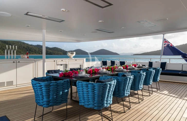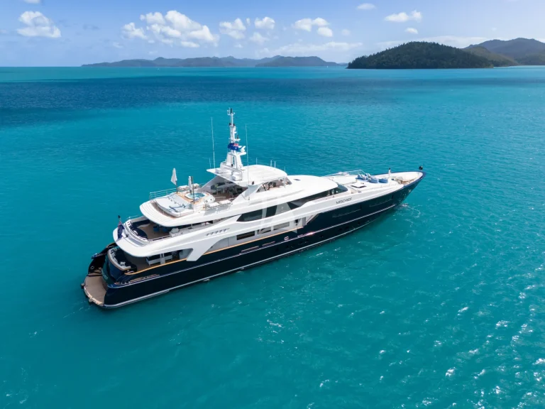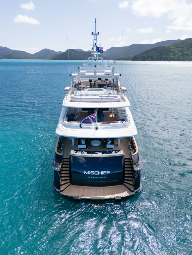 As the largest commercial superyacht in Australia, MISCHIEF is a yacht that turns heads. Famously eye-catching, featuring sleek lines that showcase her iconic French Navy hull and white boot stripe, this superyacht has been designed to impress. Measuring 54 meters (177ft), with a gross tonnage of 699, this Baglietto-built yacht is a true powerhouse on the water.