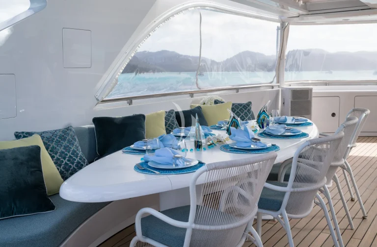We were a group of 11 ranging from late 20’s to late 90’s (yes 90’s) and the crew catered to us all, they were warm, intuitive and professional. Each crew member contributed to the seamless sense of luxury, adventure & fun without being intrusive. Dining was outstanding – curated by a fabulously enthusiastic head & sous chef, often with locally procured seafood. The decks, cabins & communal areas are spacious & refined with high-end detailing & furnishings. There was also a great complement of water toys and activities. Adventure with comfort!”