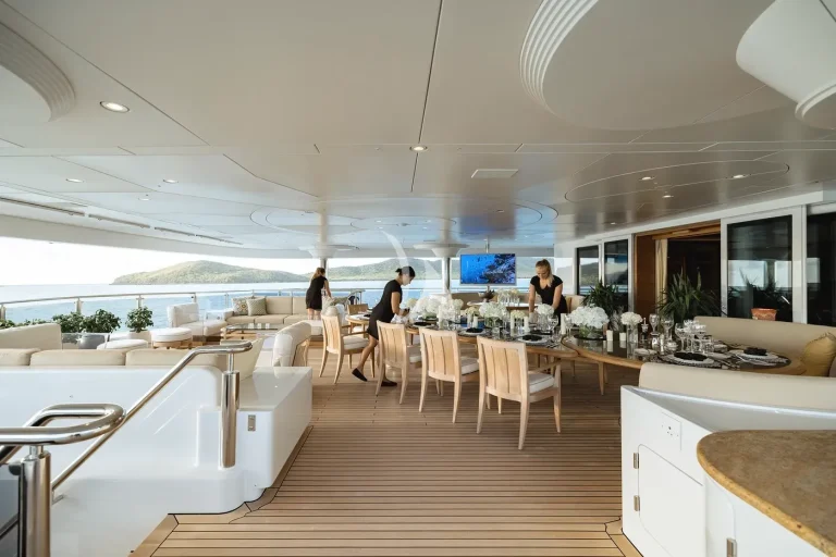 NAIA’s helideck is fully operational and certified as a commercial deck. The yacht has a fully trained crew, however there are no refuelling capabilities on board.