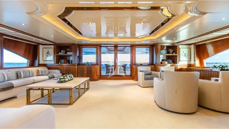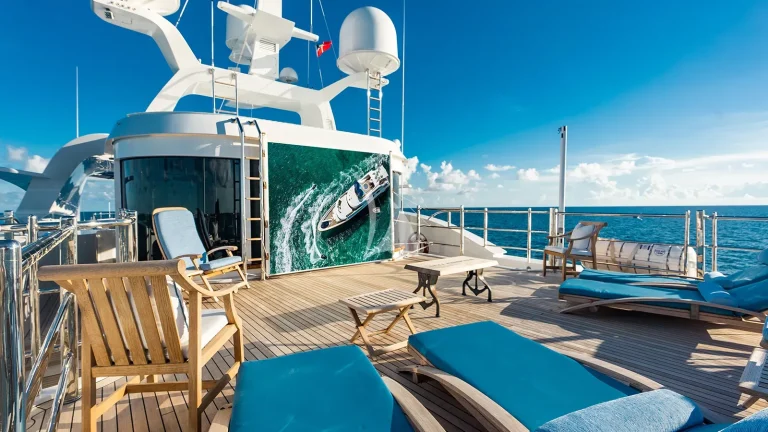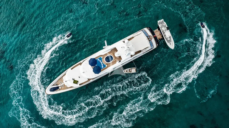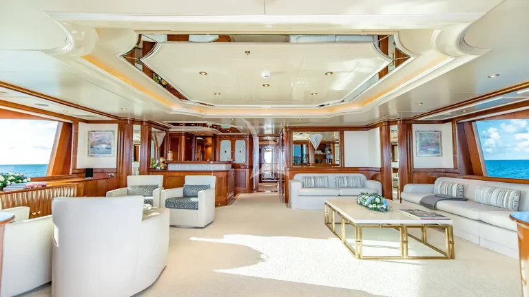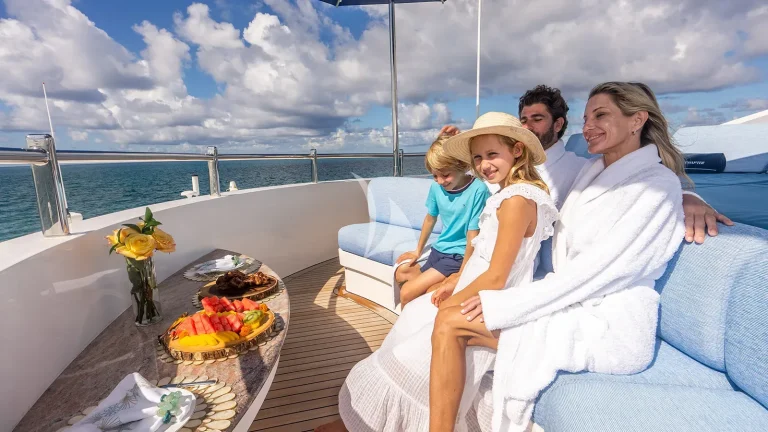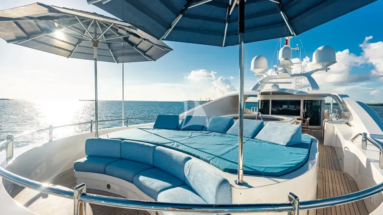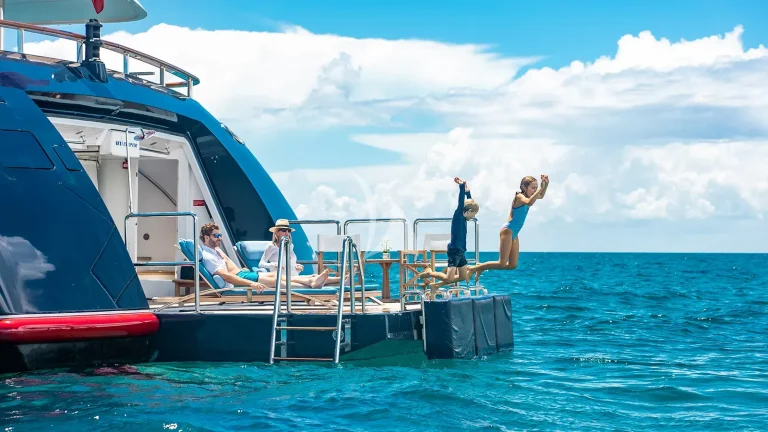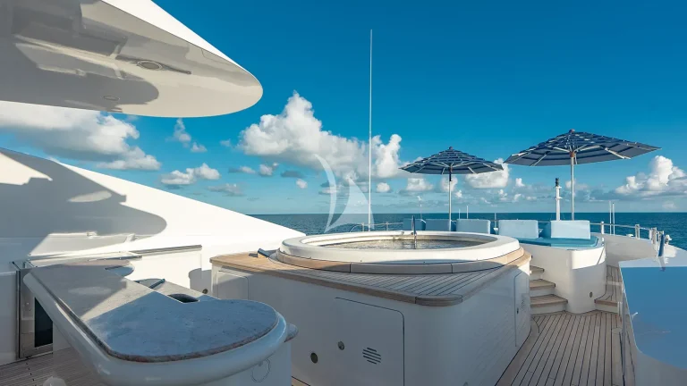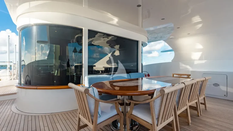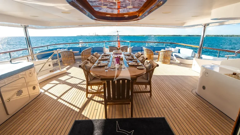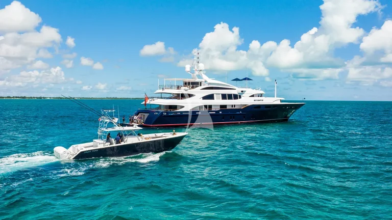 Designed by Italian designer Stefano Natucci, the interior throws an abundance of natural light, while the exterior provides plenty of shade. She offers a full complement of water sports equipment and tournament fishing gear. Her experienced crew of 15 will provide unparalleled service and expert fishing guidance and entertainment.