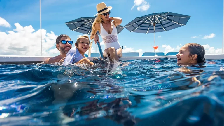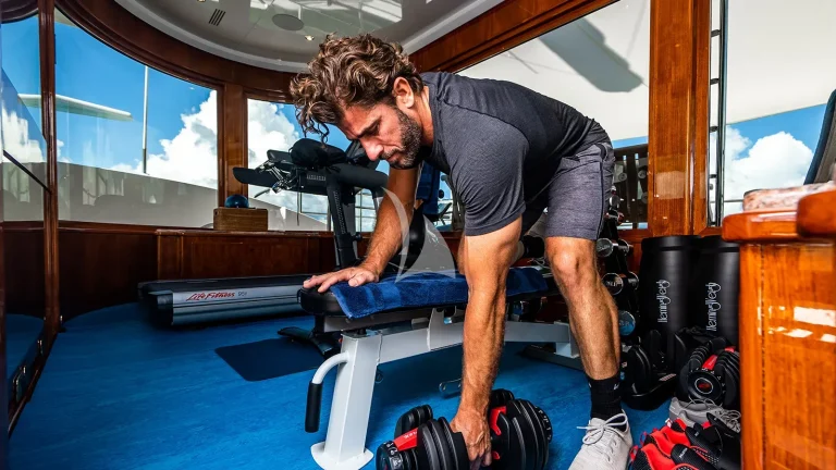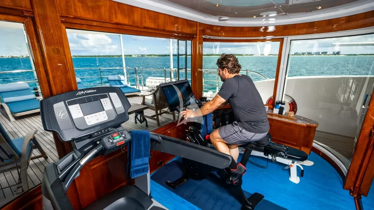 The large beach club with swim platform gives guests the opportunity to be close to the water action and doubles as an additional entertainment/socializing area . A fully-equipped air-conditioned gym on the sun deck is ideal for those looking to work out with a view, while the adjacent Jacuzzi welcomes post-fitness relaxation.