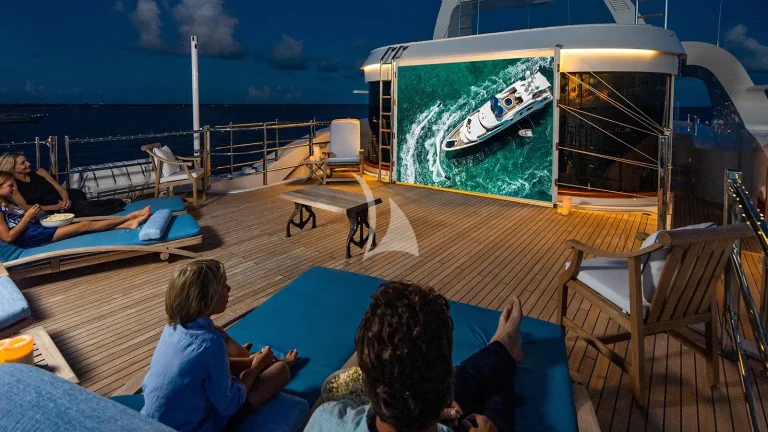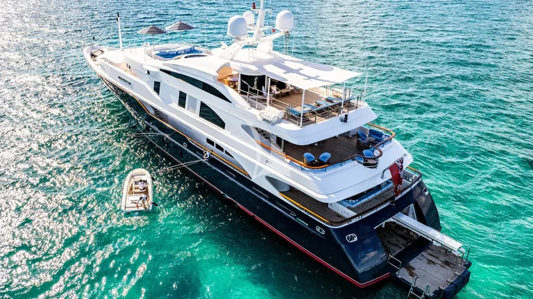 One of the many key features of this yacht is the stunning full-beam, split-level master suite with a dedicated panoramic observation lounge and separate study. The VIP stateroom on the bridge deck offers breathtaking views in almost equivalent luxury, which makes NEXT CHAPTER an excellent choice for a mixed charter group. Further accommodation is provided in two Queens and two Twin cabins, one with a Pullman berth. NEXT CHAPTER is a proven charter yacht with one of the most spacious layouts inside and out found on any 55m vessel. An ample 909 GT offers stability and volume, while four zero speed stabilizers reduce any rolling motion while at anchor. She benefits from all the features a modern charter guest desires, including a generous swim platform, beach club, and an air-conditioned gym.