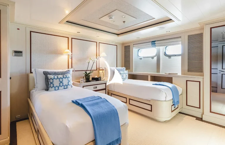 ODESSA combines excellent ocean-going characteristics and performance with elegant exterior and interior spaces. She sleeps up to 10 guests in five staterooms and can accommodate two additional guests in the master office, which converts into a double cabin including an en-suite shower and dressing-room space. The remaining four cabins are situated on the lower deck, two of which can convert from doubles to twins.