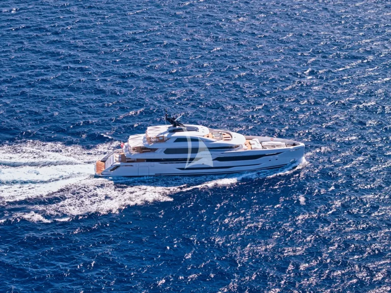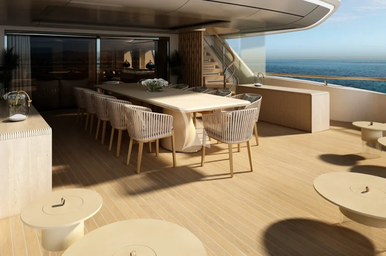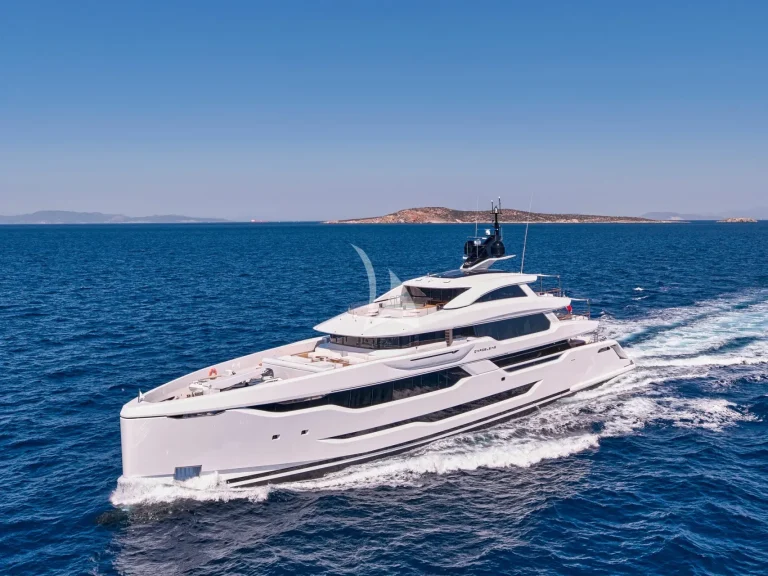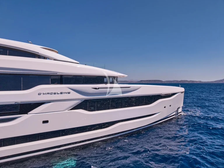 Crafted with meticulous attention to detail by Studio Vafiadis and Massari Design Studio, she presents exceptional build quality. O’MADELEINE’s exterior is defined by sharp lines with longitudinal windows, giving the impression of an even longer boat. Accommodating up to 12 guests across 7 opulent staterooms, O’MADELEINE offers unparalleled living spaces and custom interiors with a relaxed and natural theme.