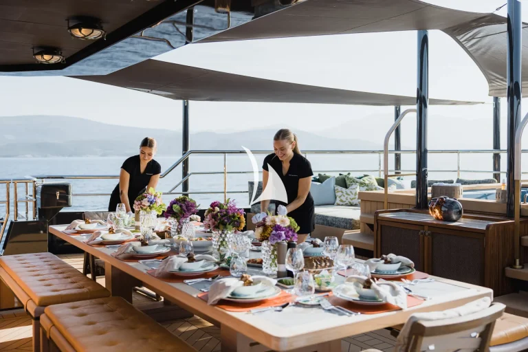 From the moment she catches your eye, Pink Shadow promises something extraordinary. Her iconic silhouette and bold, distinctive hull colour make a striking first impression—one that hints at the unforgettable experience waiting on board.