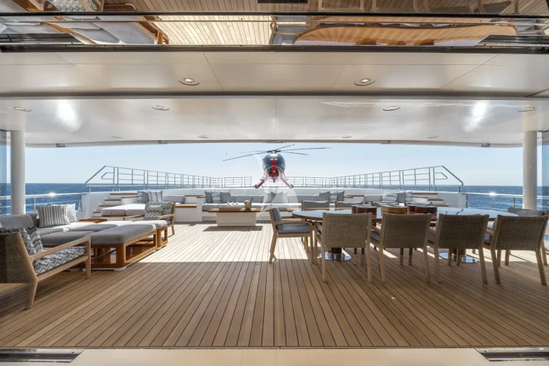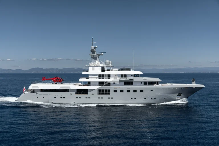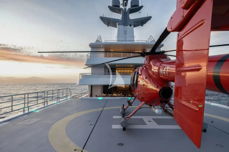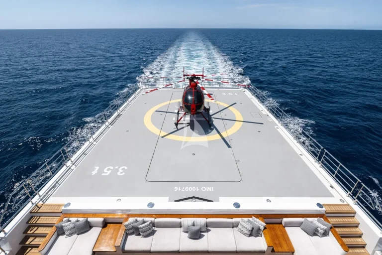 With massive 2,100GT of volume, PLANET NINE can accommodate up to twelve guests in nine elegant cabins, including a separate owner’s deck and a main deck VIP suite. Her hull is ice classed and comes with a superb specification including her MD 600 Explorer helicopter, hangar and helipad.
