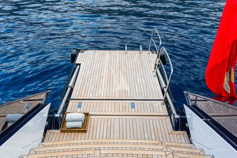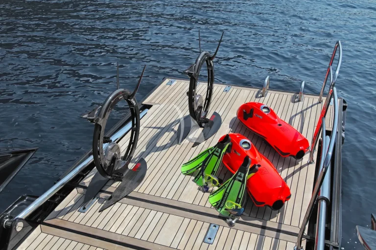 Inside, PRANA features chic, airy interiors designed by Redman Whiteley Dixon, incorporating rich woods and tasteful decor for a warm, welcoming ambience. The spacious main saloon provides the ideal setting for socialising or relaxing, and each of her cabins offers tranquility and privacy. The master suite is particularly outstanding, with an impressive layout that includes a walk-in wardrobe, dedicated study area and is en suite with a bath and shower. Whether you’re adventurous, keen to explore the warm Mediterranean waters with the yacht’s extensive collection of water toys, or to simply seek peaceful relaxation, PRANA provides a memorable charter experience tailored to every taste.