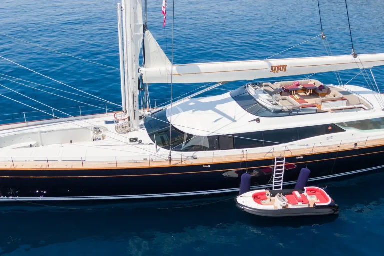 PRANA is a magnificent 51.7-metre luxury sailing yacht offering the ultimate charter experience with a perfect blend of traditional craftsmanship and contemporary design. Built by Alloy Yachts and masterfully designed by Dubois, she effortlessly combines elegant sailing performance with exceptional comfort. With expansive decks offering multiple lounging and entertaining spaces, including a luxurious sundeck spa pool, open-air cinema setup, and sophisticated al fresco dining areas, guests can fully embrace life at sea in utmost style.