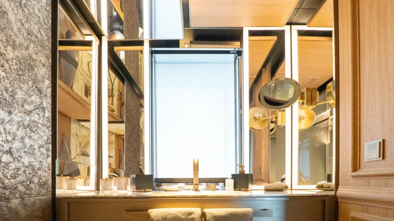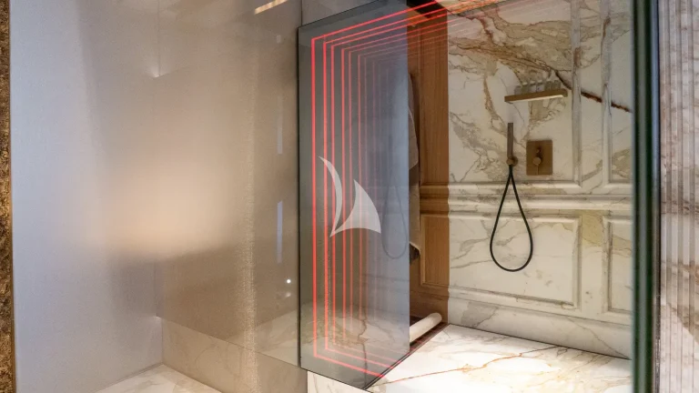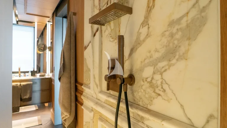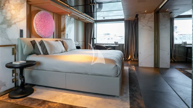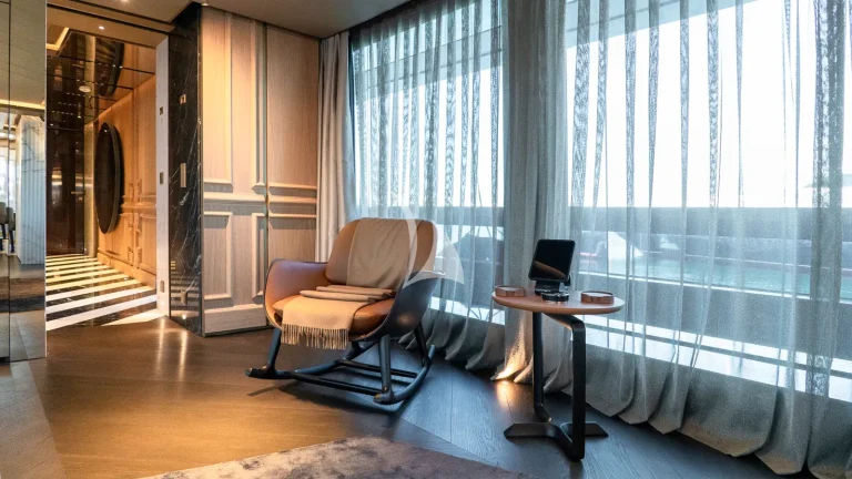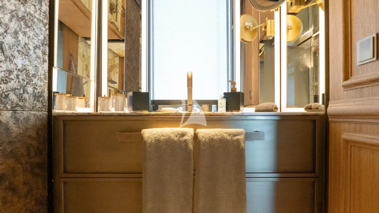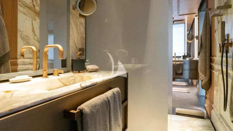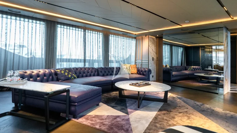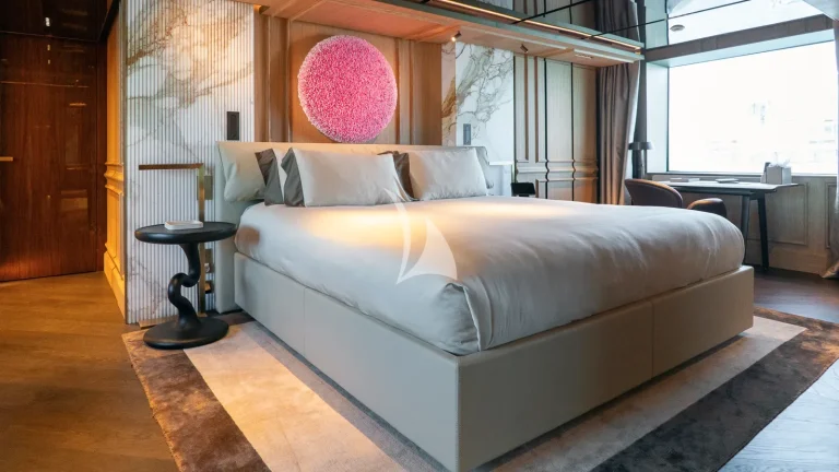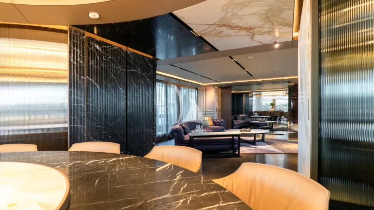 Her expansive exterior decks are thoughtfully designed for both entertainment and relaxation. From the sweeping sundeck with a gold-detailed mosaic swimming pool to the stylish beach club at water level, RAJA² invites you to immerse yourself in the yachting lifestyle. Whether you’re sipping cocktails at sunset or enjoying a private moment by the sea, every space is curated for memorable moments.