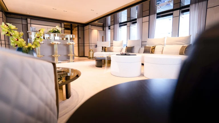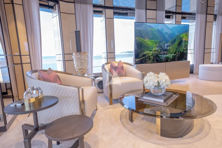Stepping inside guests will immediately be captivated by Reliance’s impressive volume and Luca Dini’s masterful interior design. Calming taupe and cream tones blend seamlessly with a rich array of darker textures and pronounced metals, resulting in a timeless and elegant environment. All furnishings in the main salon, including a dining table for up to 12 guests, are complemented with exquisite feature lighting and ornaments, creating warm and atmospheric spaces that guests will not want to leave.