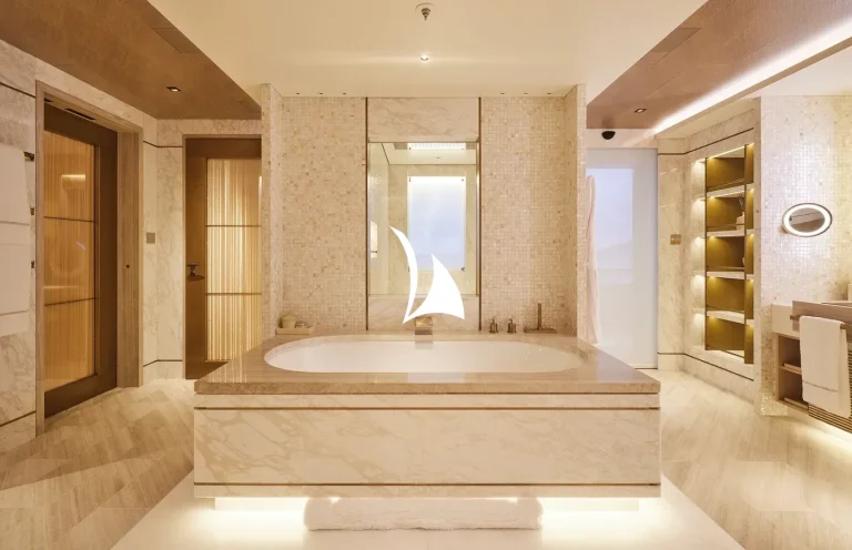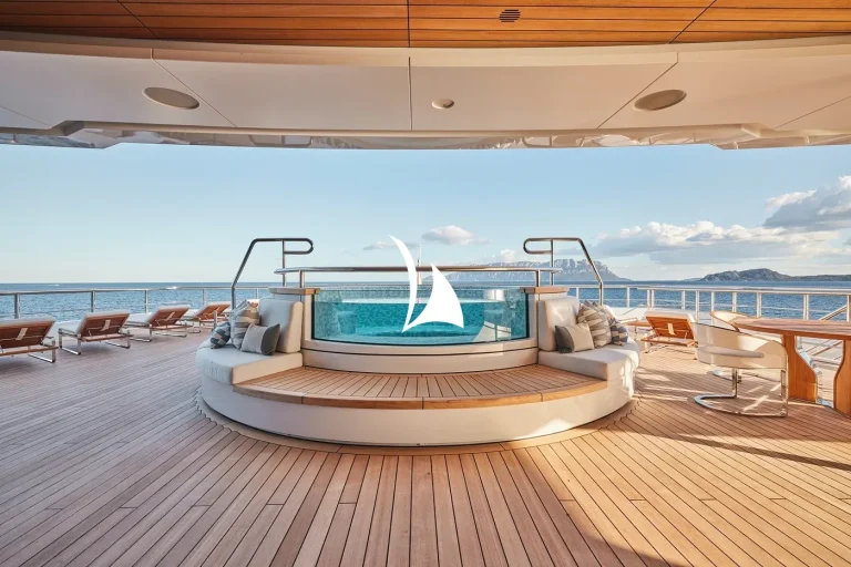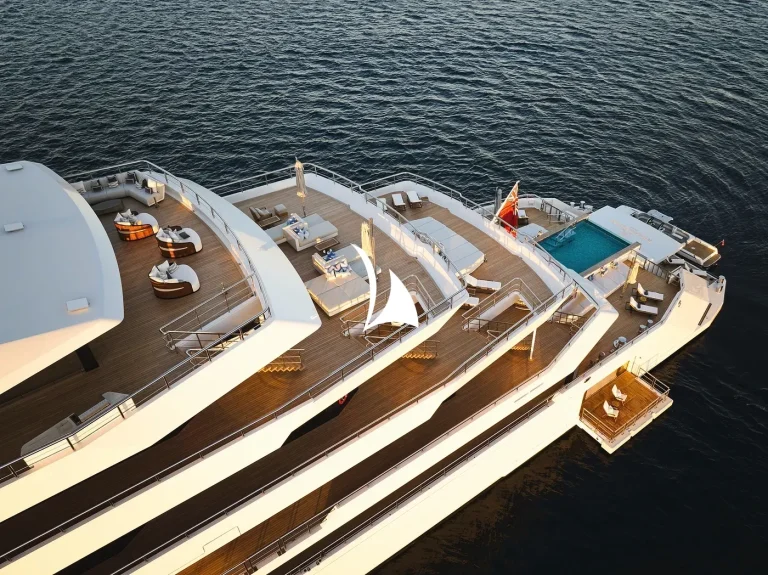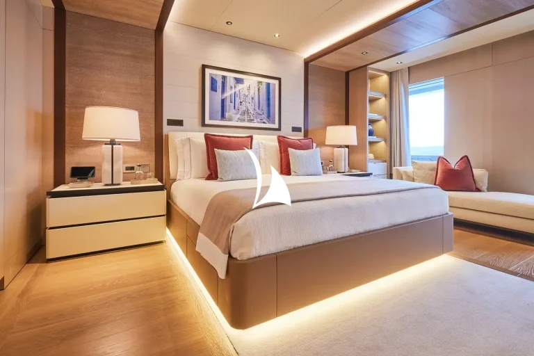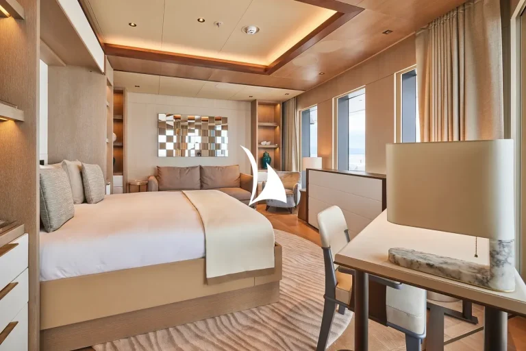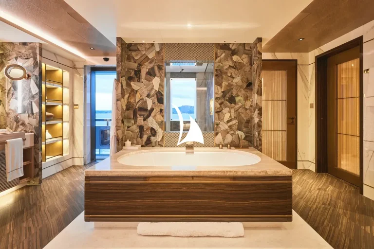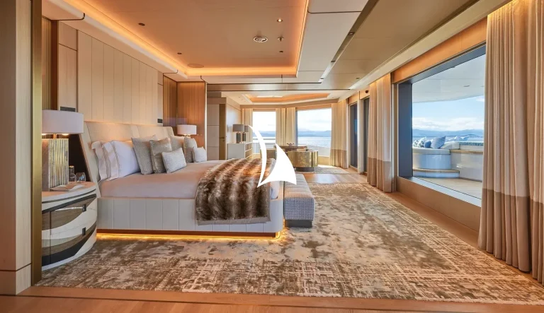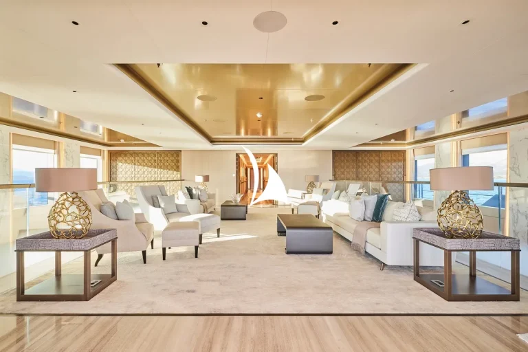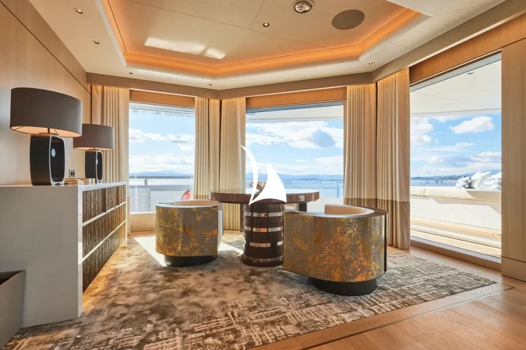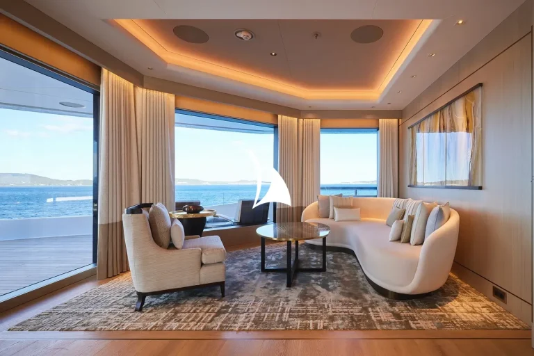 Designed, inside and out, by the award-winning British studio Bannenberg & Rowell, the yacht’s interior is a sophisticated collage of neutral colours, tactile furnishings and highly usable spaces ideal for a multi-generational charter. With six decks for guests to enjoy, accommodation is spread over three of them and incudes a dedicated owners’ deck complete with private fore and aft decks.