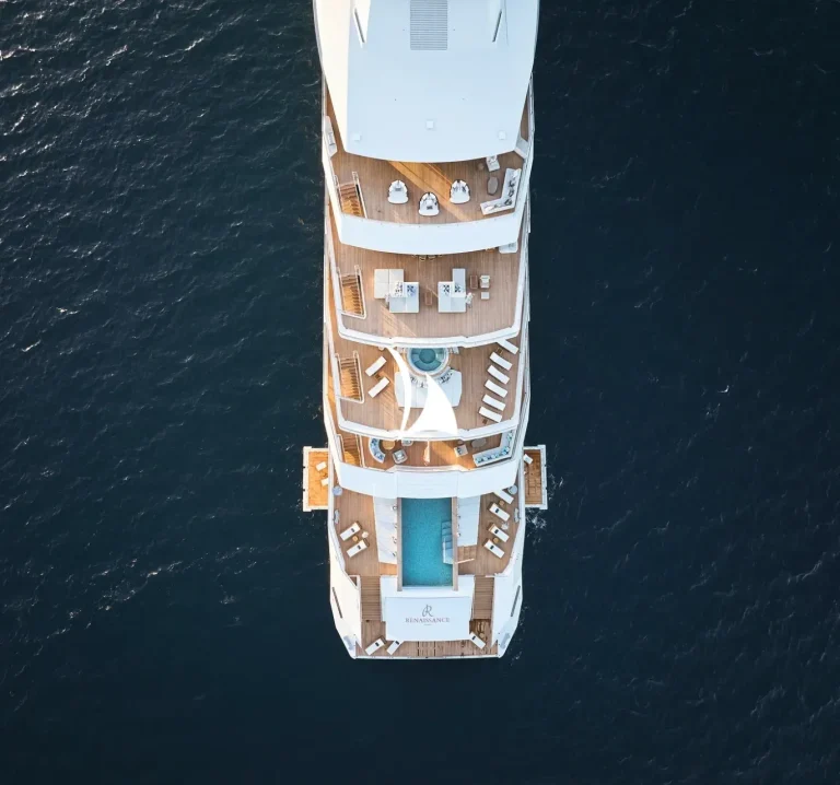 RENAISSANCE provides the ideal backdrop for entertaining. Whether it’s a black-tie event in the double-height dining salon or cosy dining in the beach club – al fresco dining is available on five of the decks – the yacht can cater for all events and everything in between too.