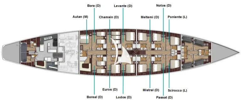 2 tenders with 25 hp and 60 hp for each 7 passengers